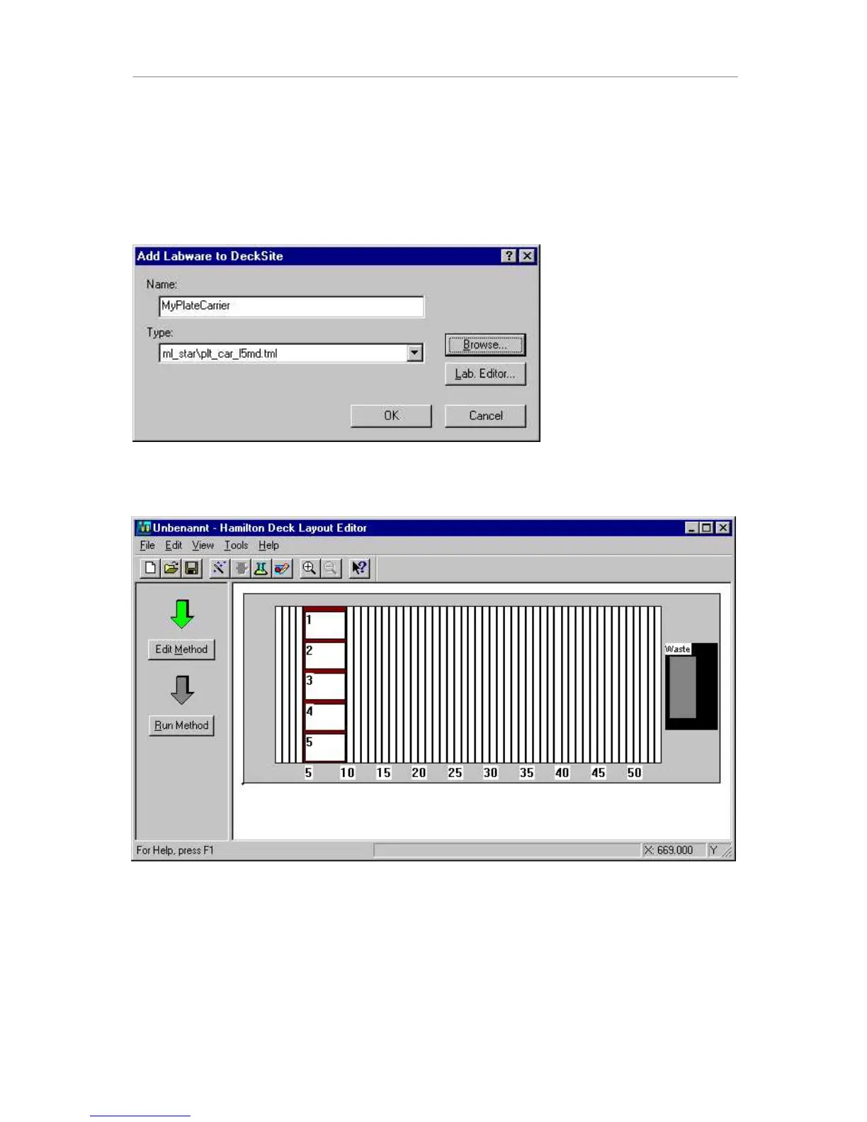 the PLT_CAR_L5MD from the \labware\ML_star directory. Click OK in the “add labware”