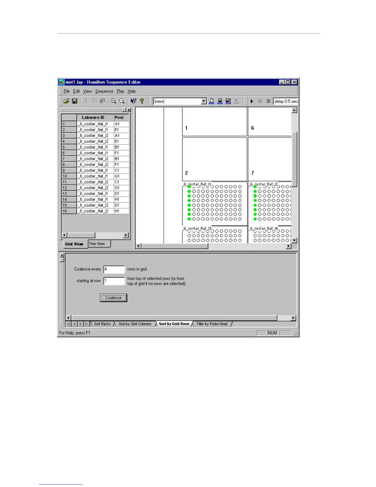 The same initial sequence if sorted using Sort by Grid Rows will result in the following: