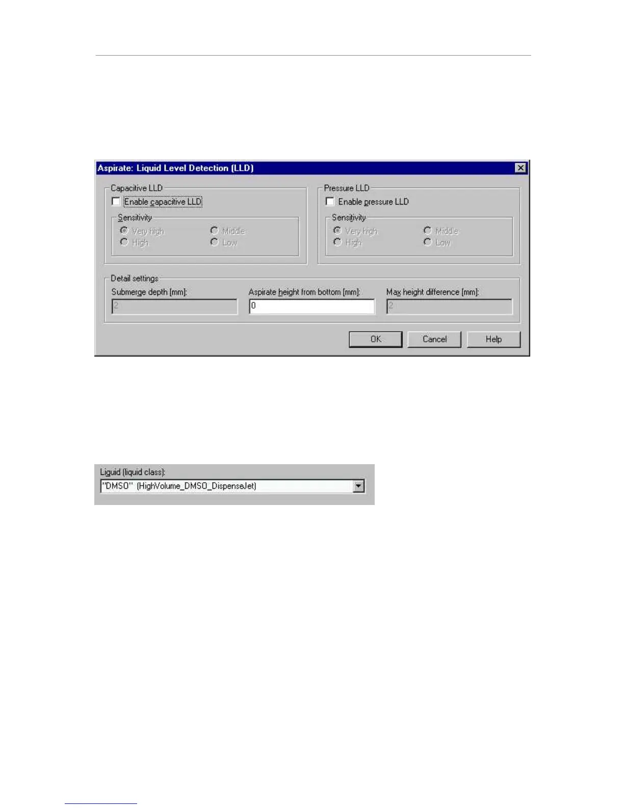 Within the LLD dialog, capacitance, pressure, or both LLD types may be switched on. A