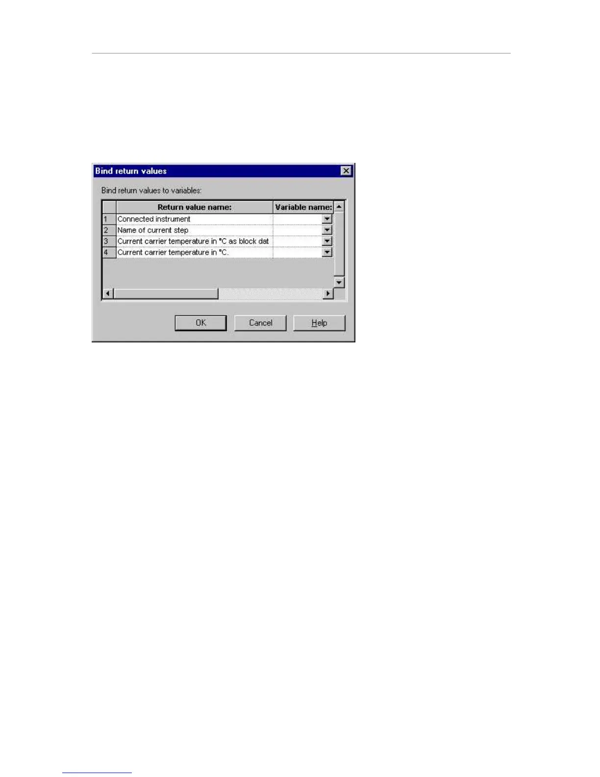 dialog generally lists the return values, each with an editable field to define the variable the