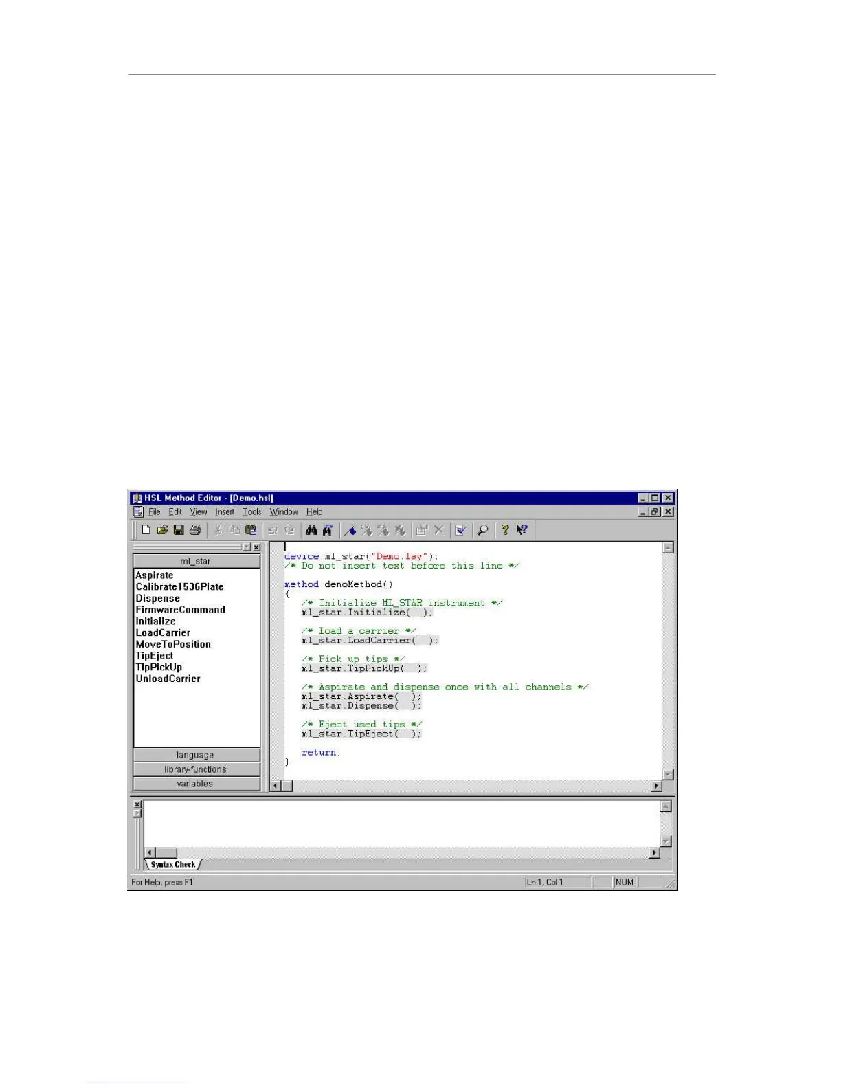 specific steps as the graphical method editor. It allows methods to be created, saved,