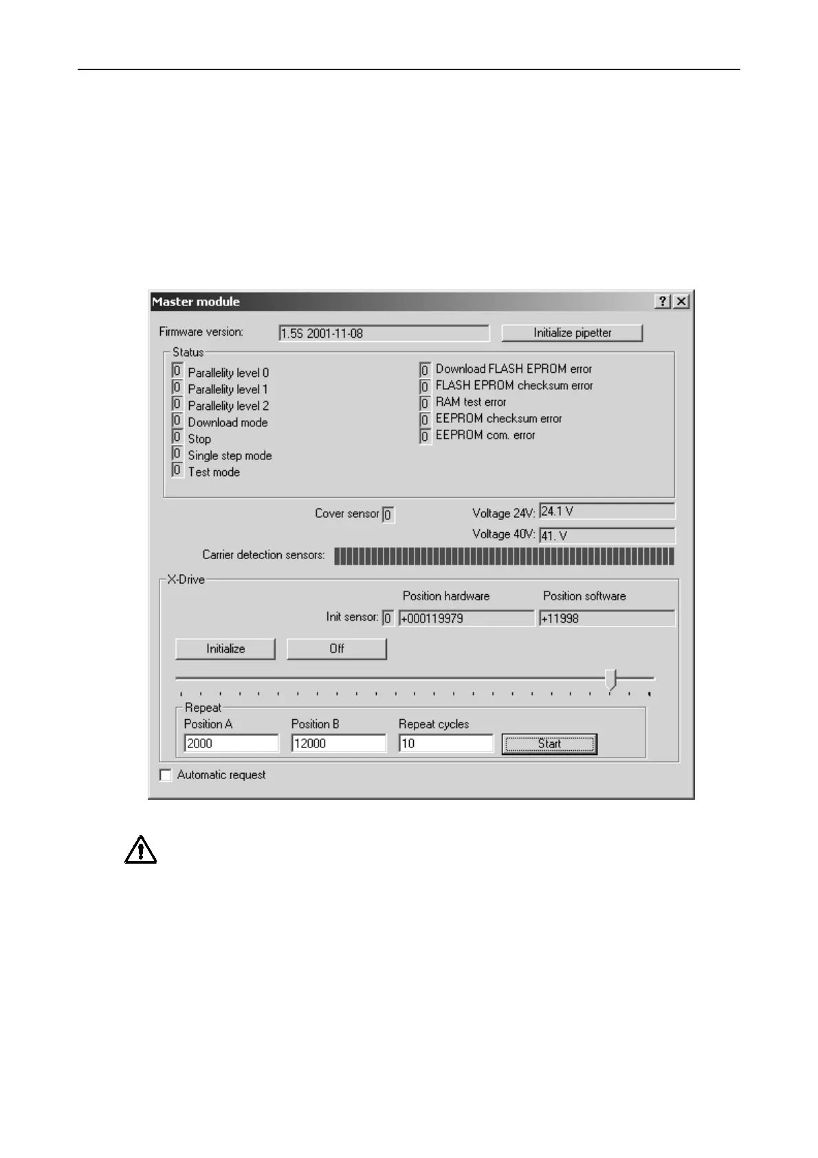 X- direction to ensure a neutral positioning of Pipetting Arm.