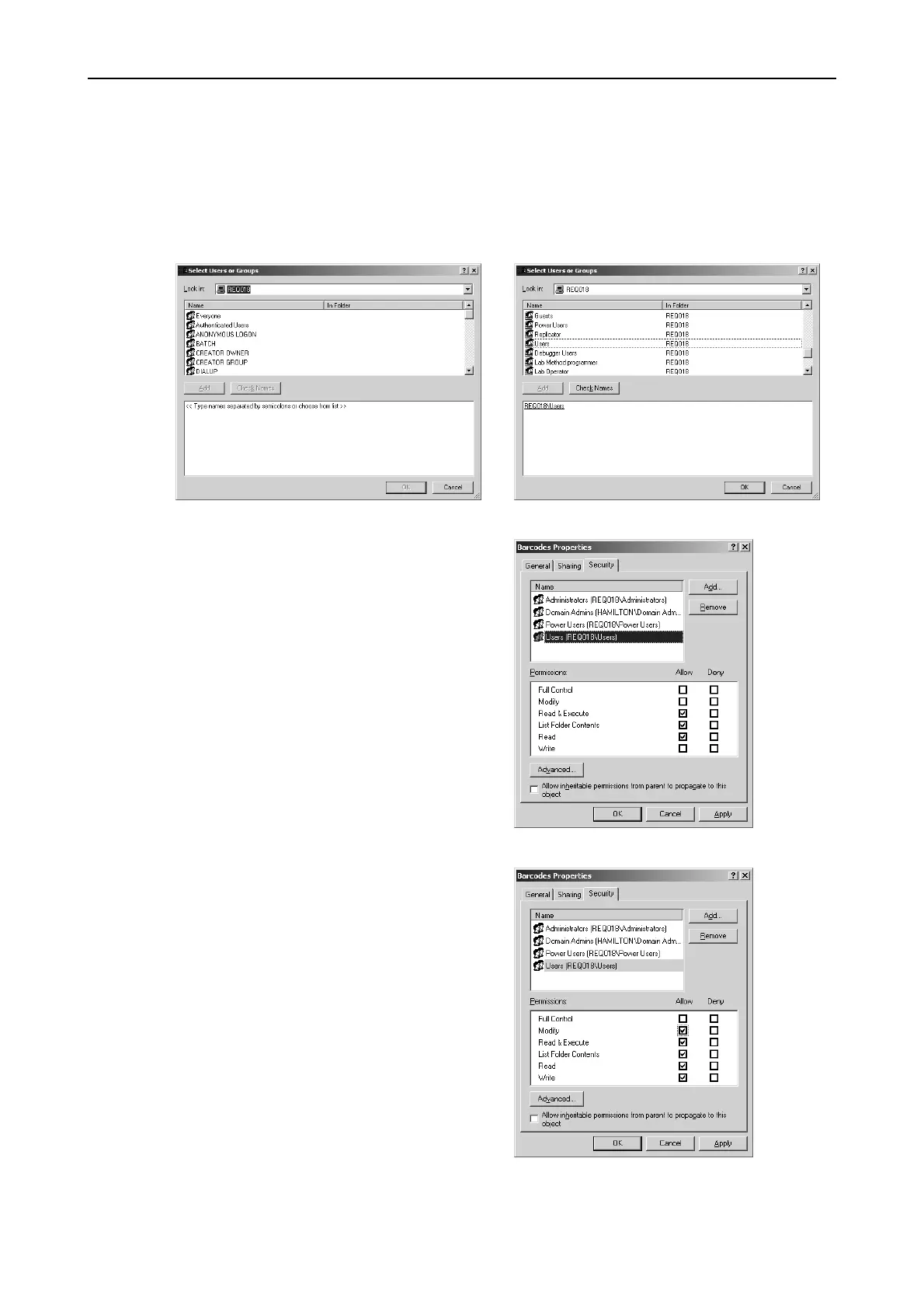 Check Access rights for C:\Barcodes (continued)