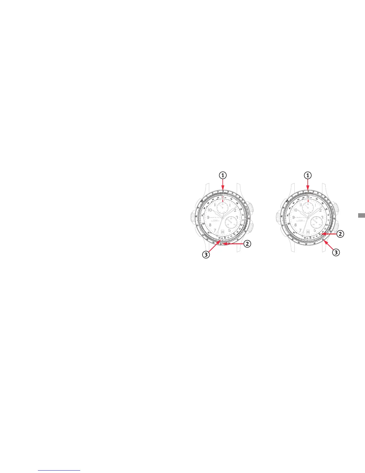 u de knop loslaat gaat de grote secondewijzer van start