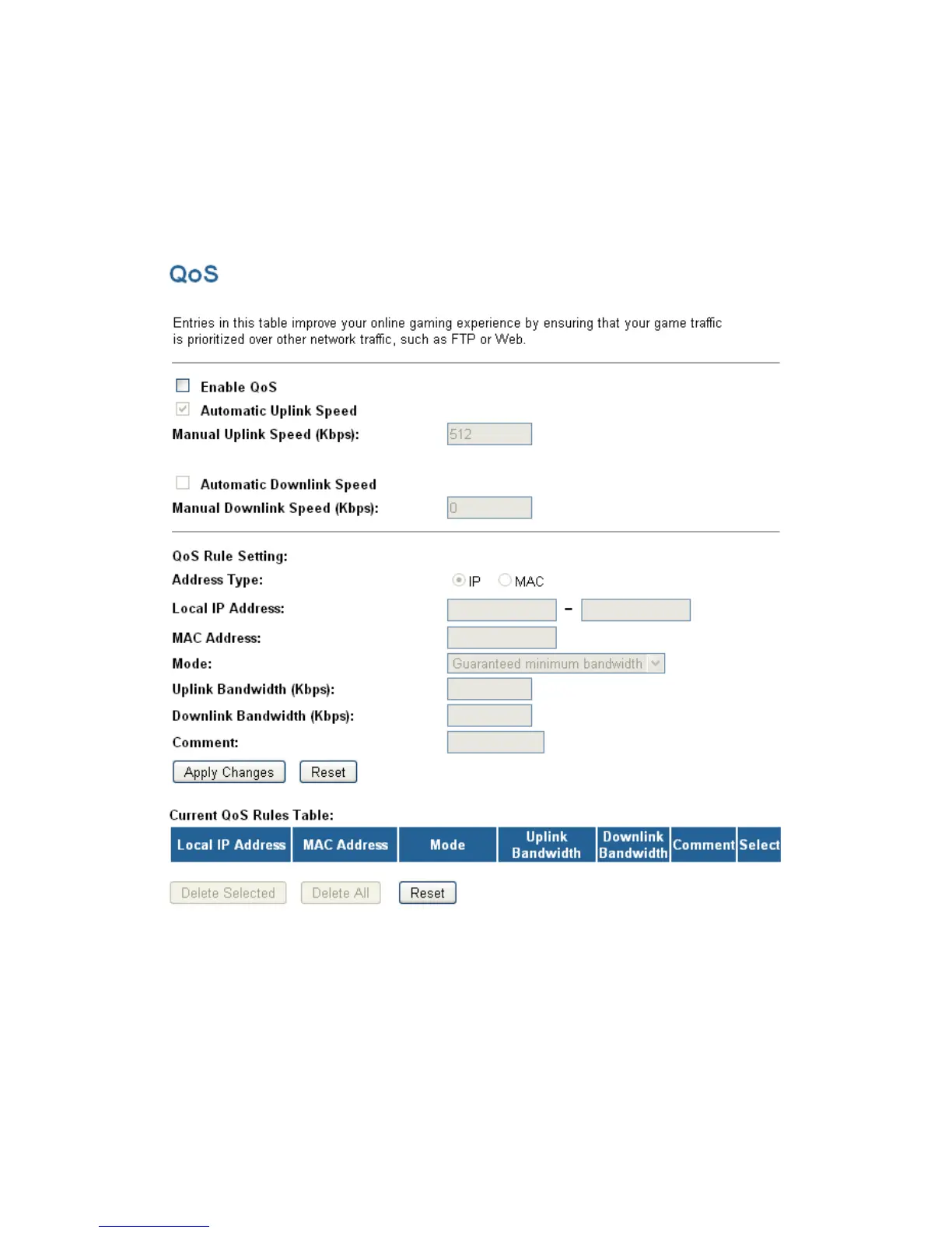 1. From the left-hand Firewall -> QoS menu. The following page is displayed: