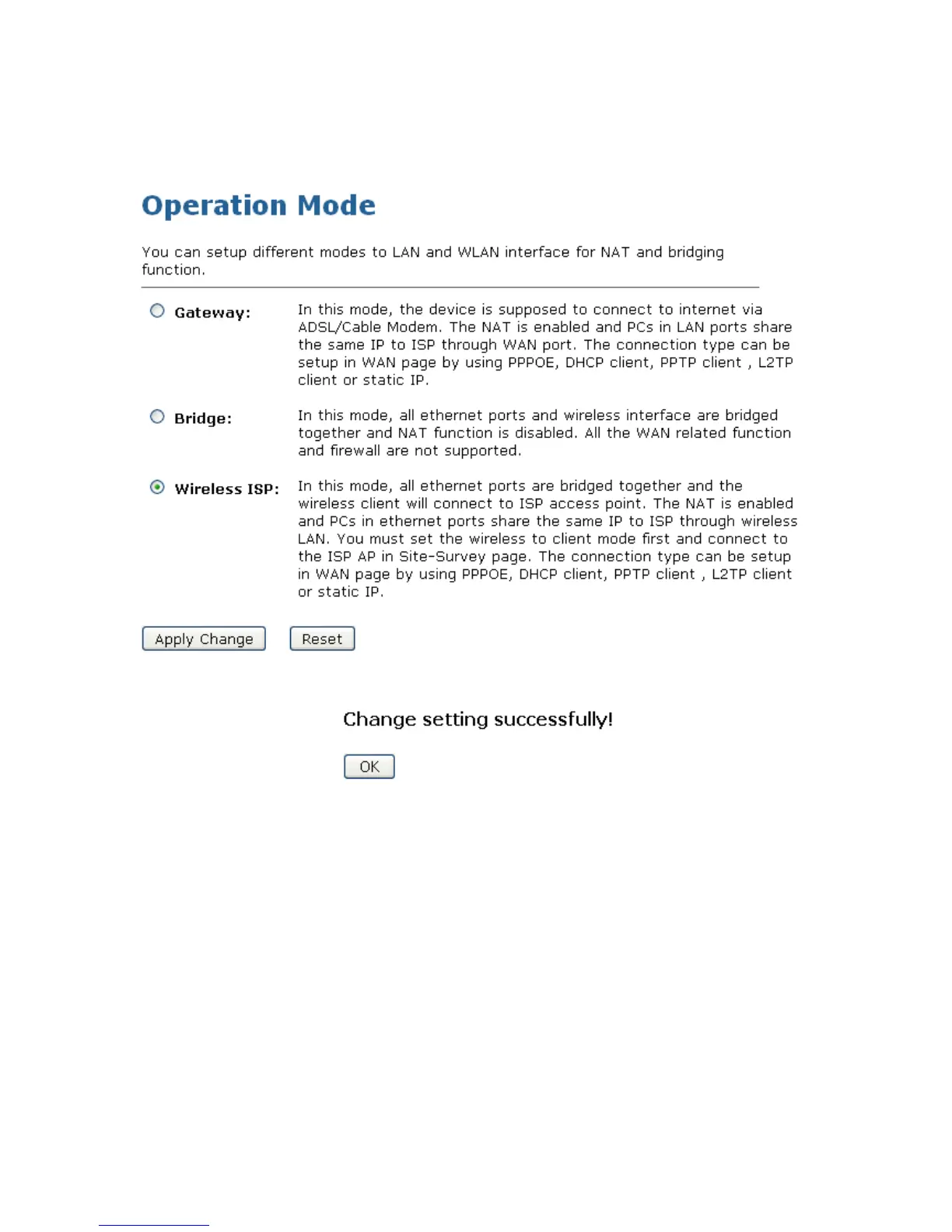 1. From the left-hand Operation Mode menu, click on Wireless ISP Settings.
