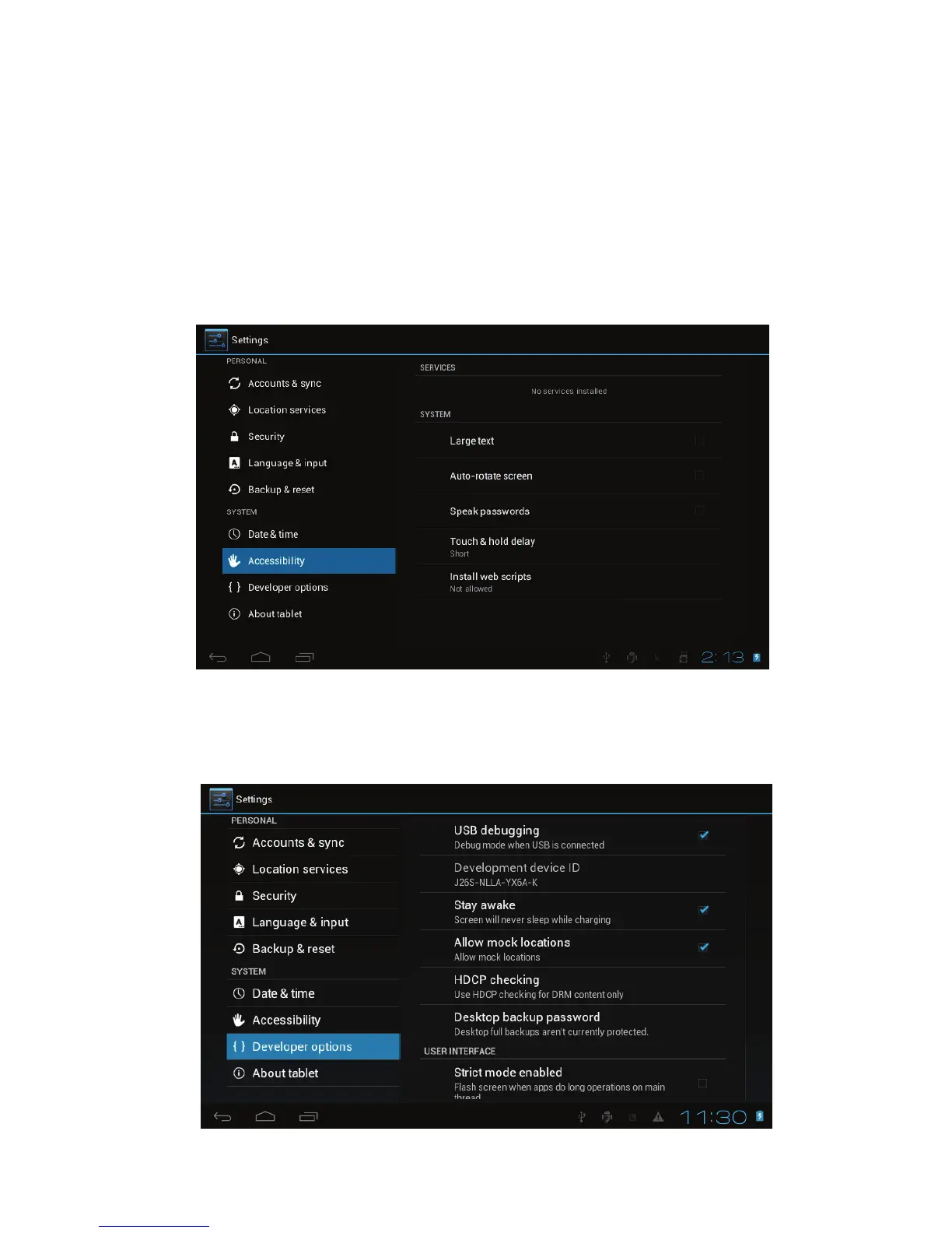 ! Developer options