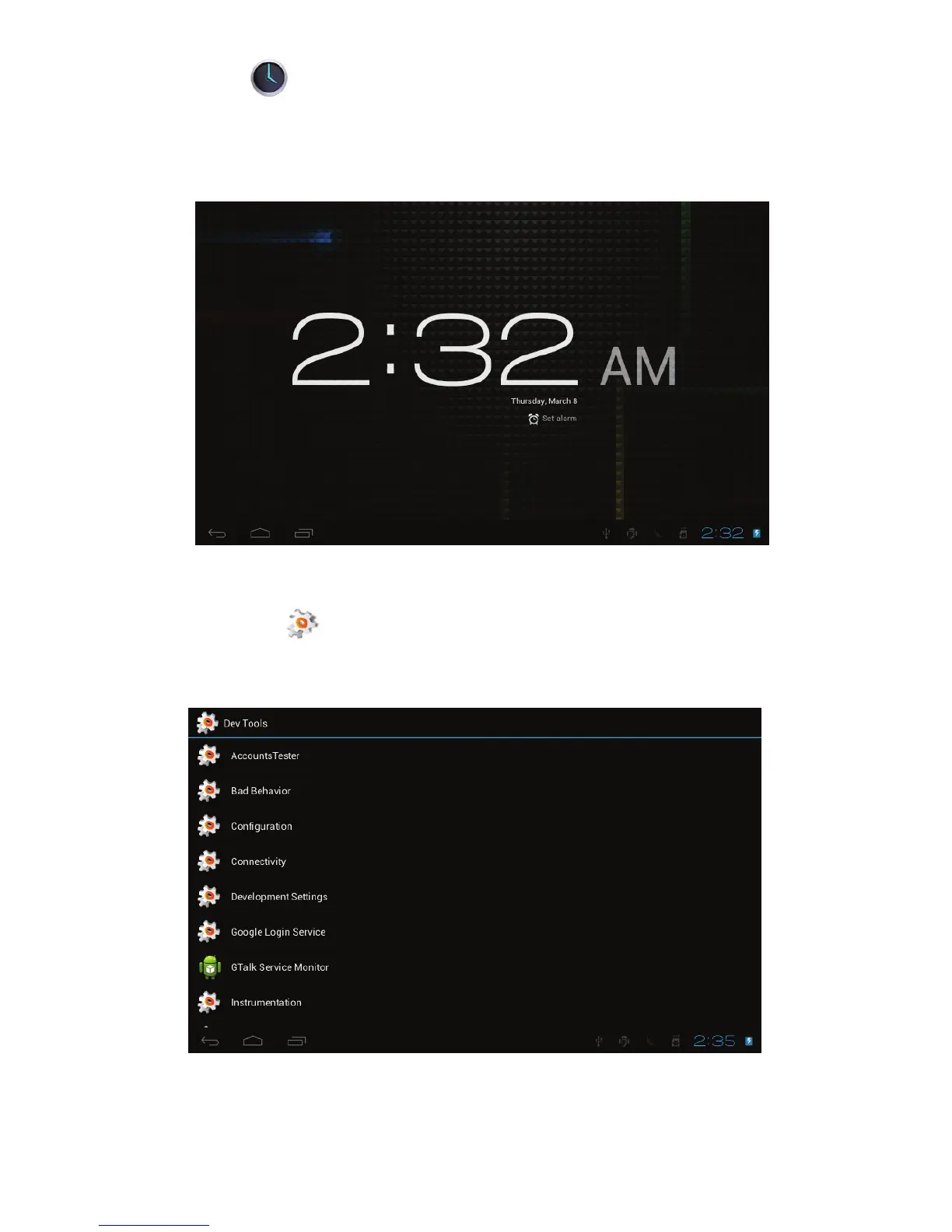 Development tools provided by Android.