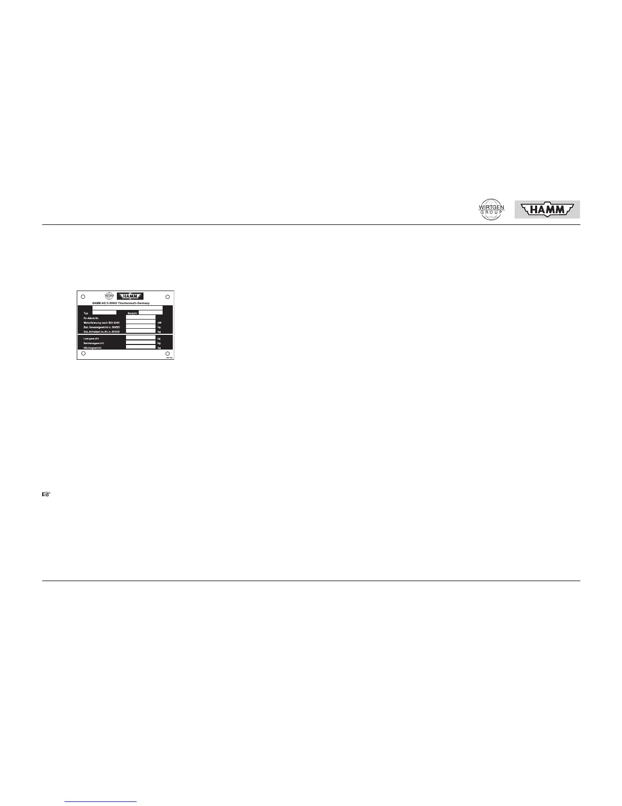 The type sign is fixed to the machine frame. It