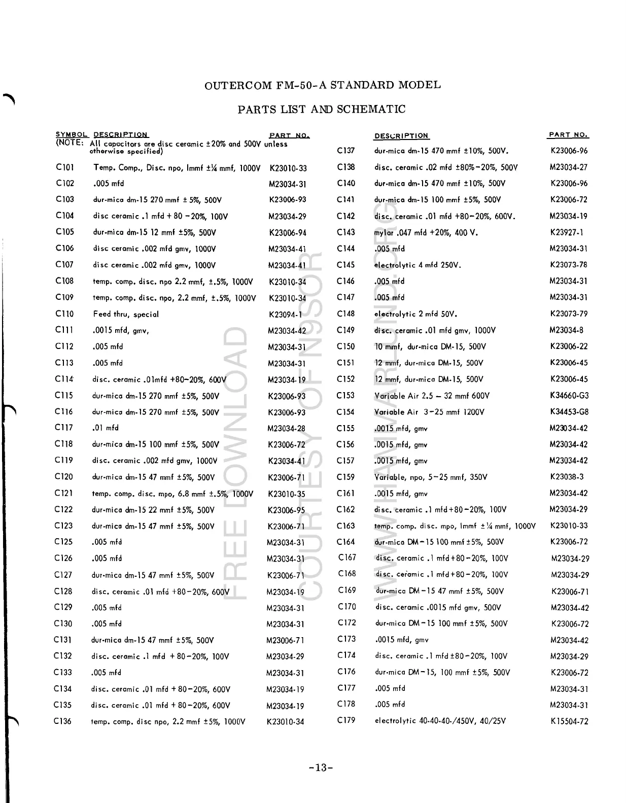Hammarlund FM50A - Parts, Schematics, and Support; Parts List and Schematics