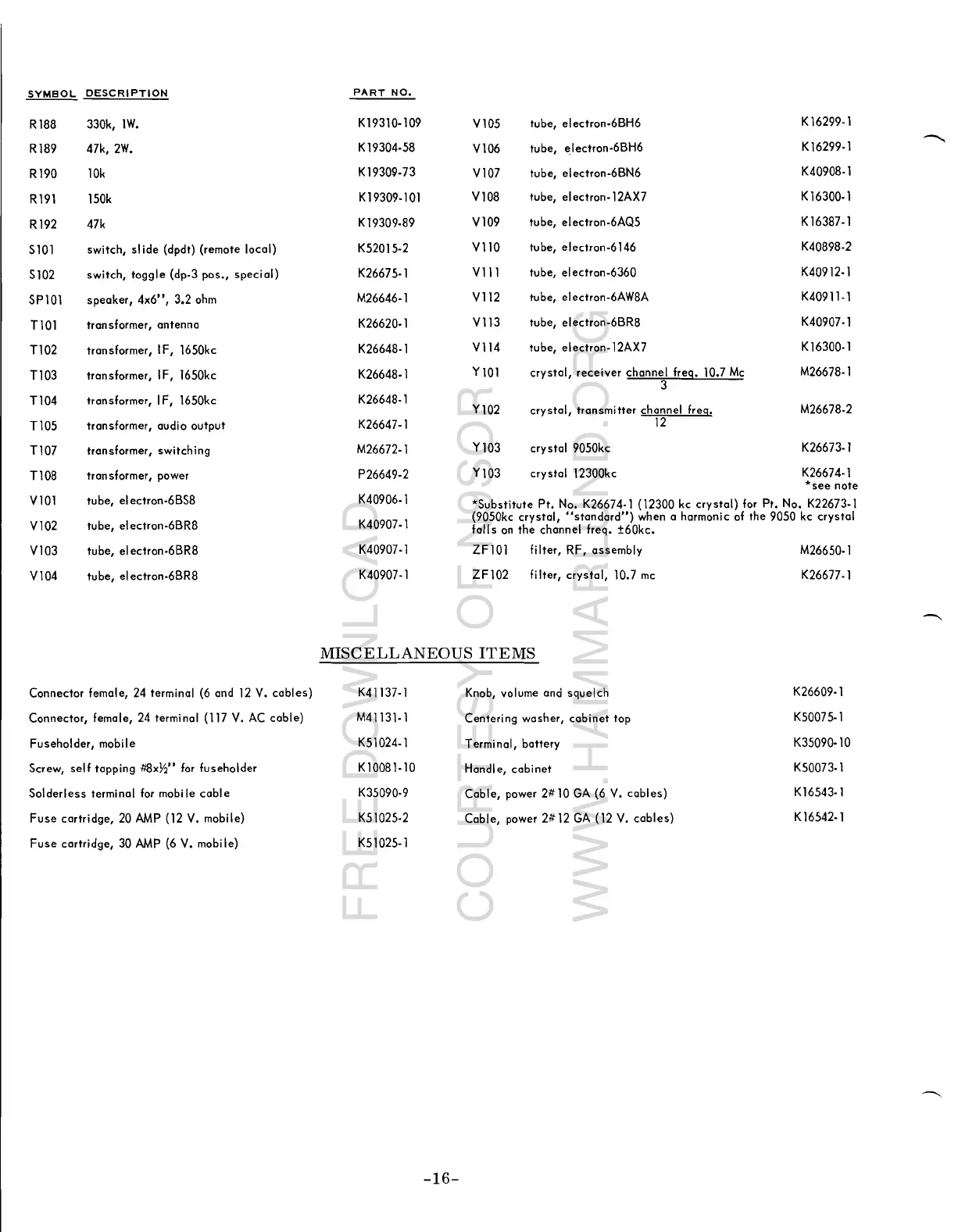 Yl01 crystal, receiver channel freq. 10.7