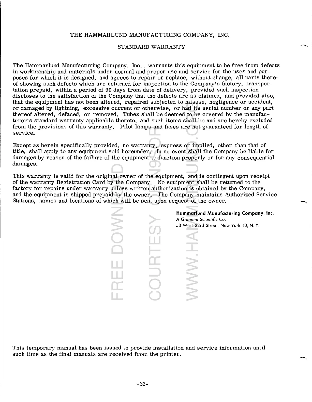 HAMMARLUND MANUFACTURING COMPANY, INC.