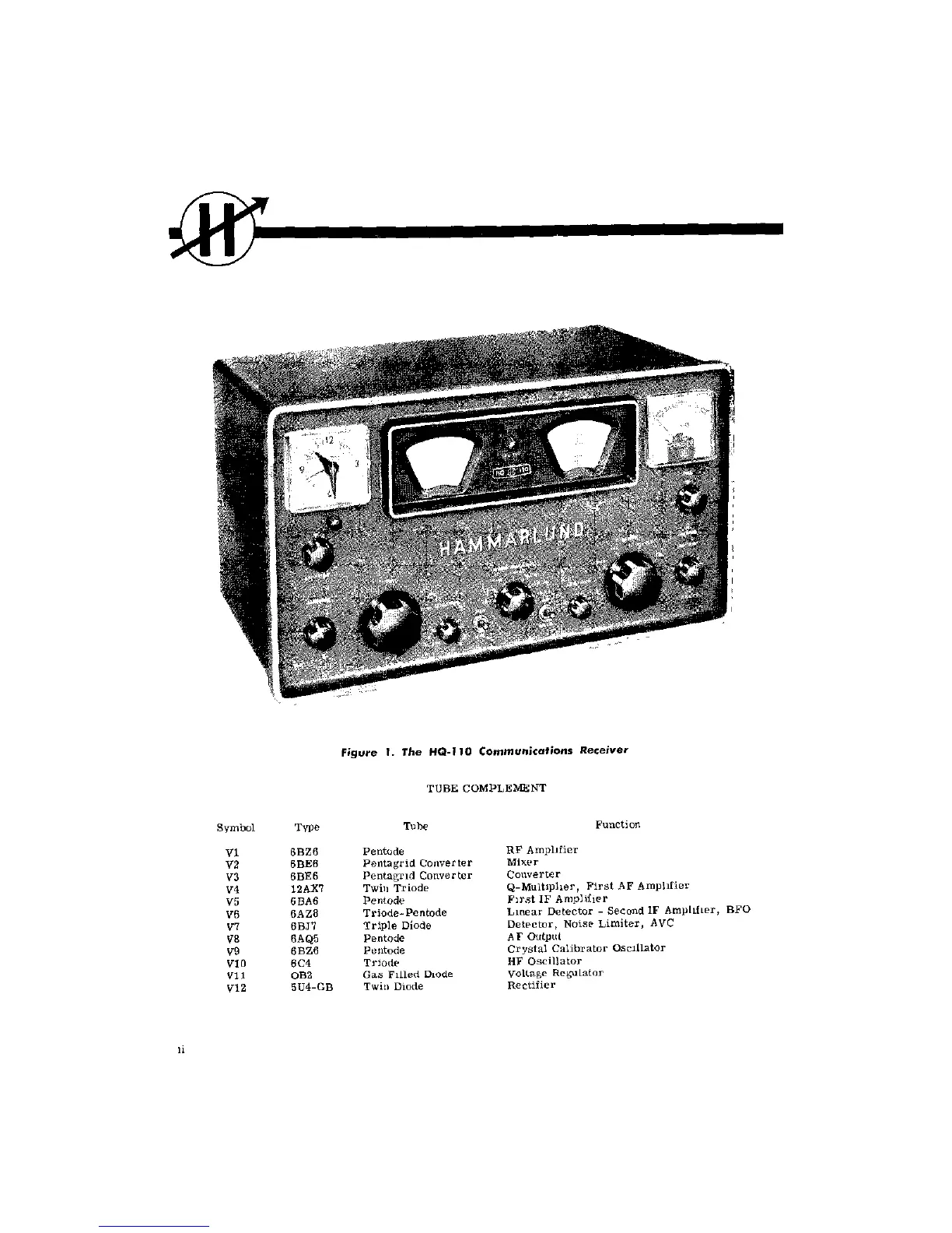 Hammarlund HQ-110 - Tube Complement