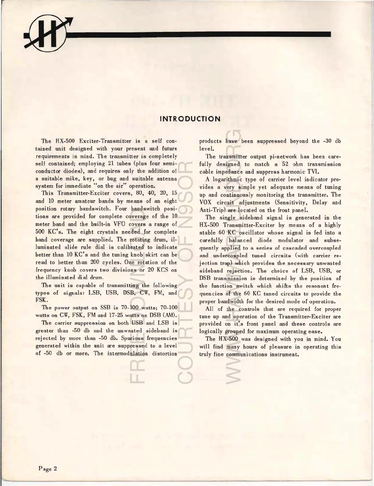 Hammarlund HX-50 - Introduction to the HX-500 Transmitter