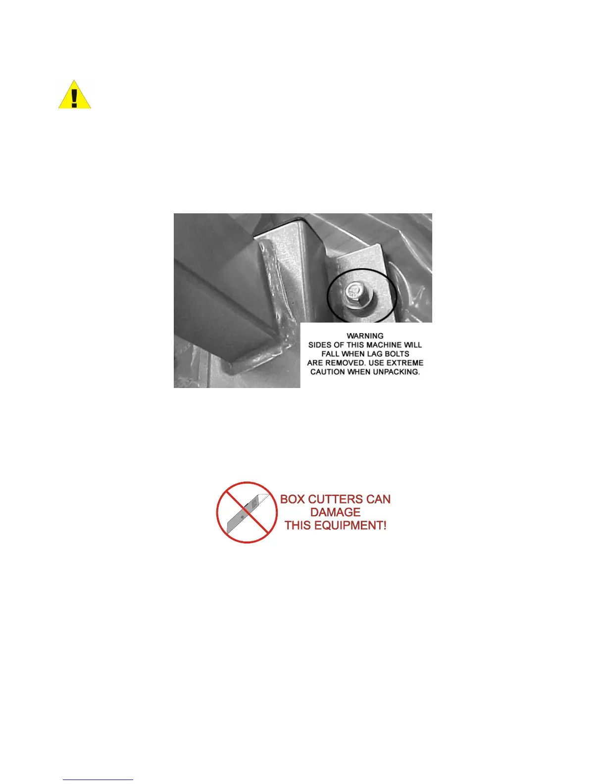 WARNING: ONCE YOU UNBOLT THE BOTTOM SHIPPING BOLTS AS