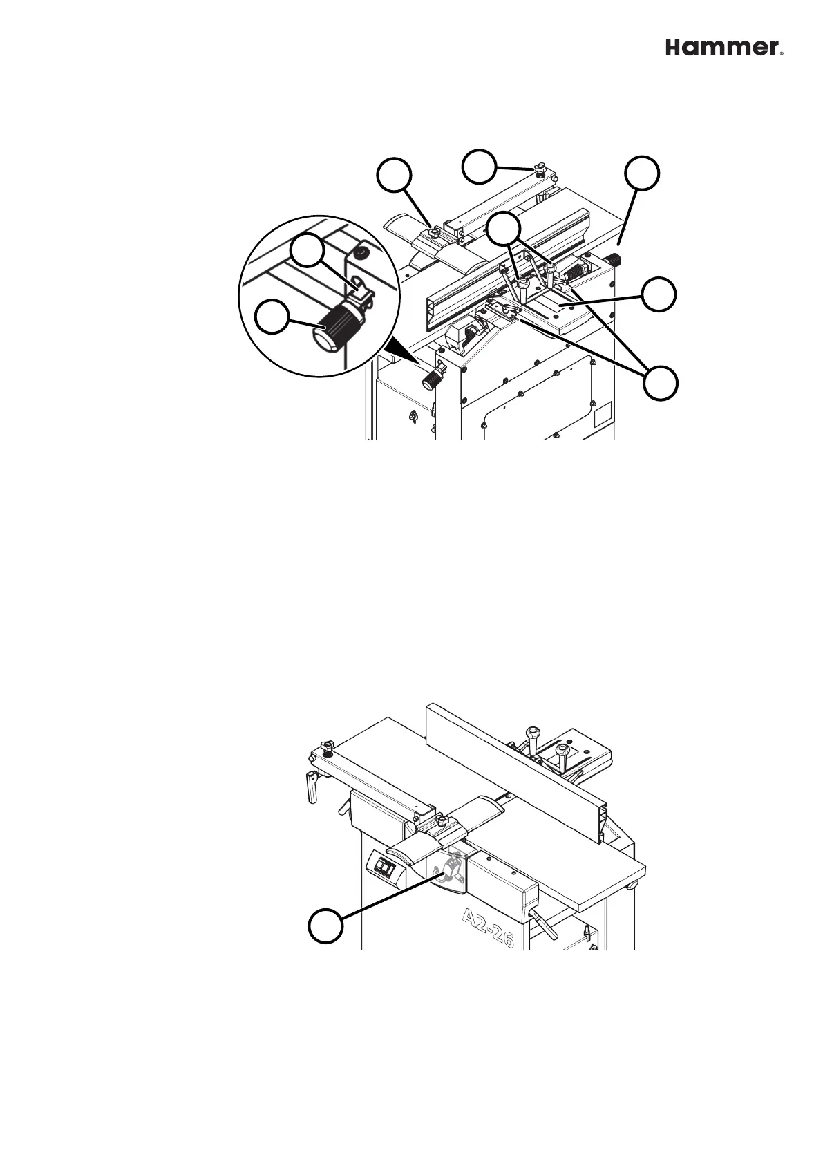 1 Set the depth of cut (infeed planing table)
