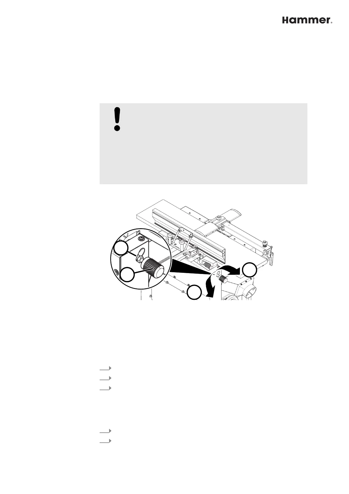 ● Set the planer table upwards: Turn the handwheel clockwise (direction