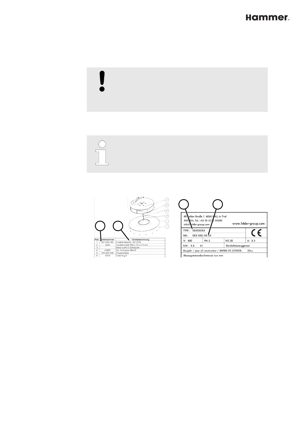 ● Type description and machine number according to the identification plate
