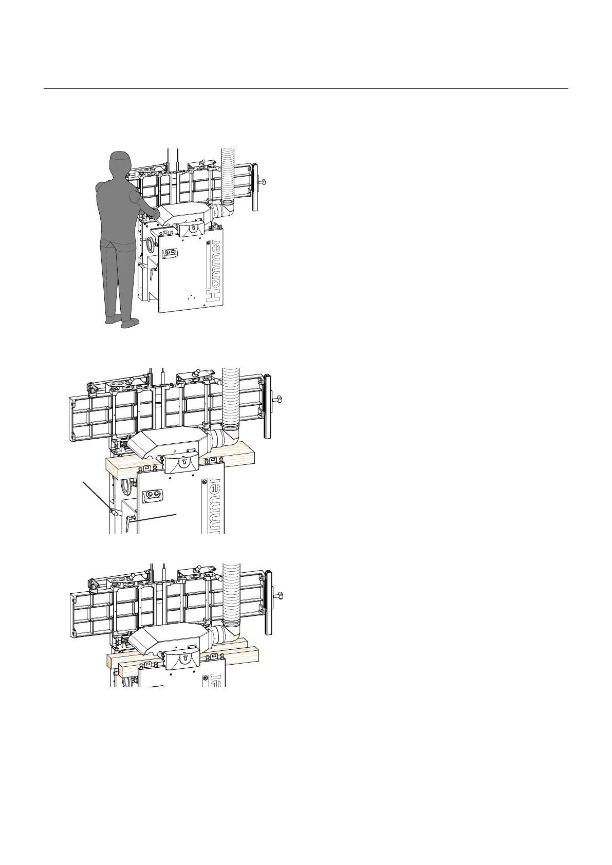 • Push the workpiece into the machine until it is pulled