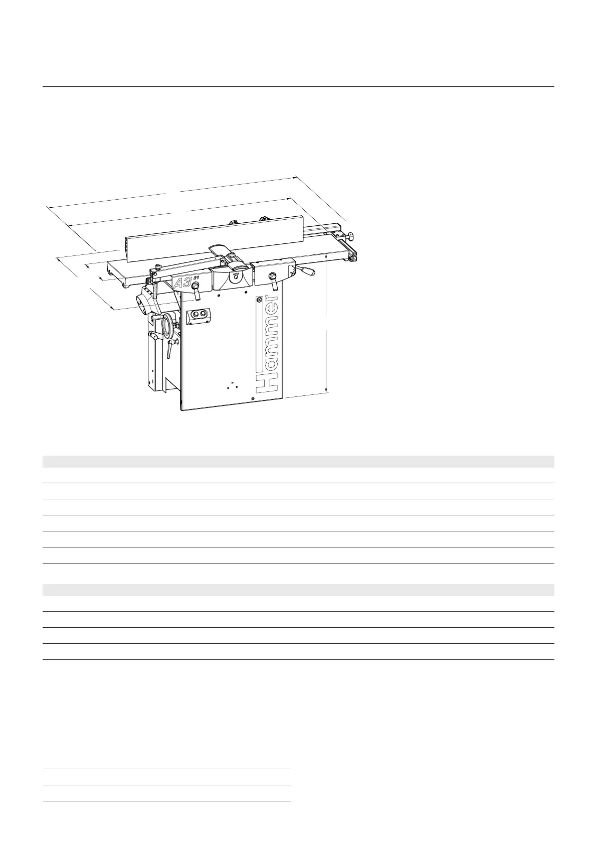Total planer table length (D) 1120 mm 1400 mm 1800 mm