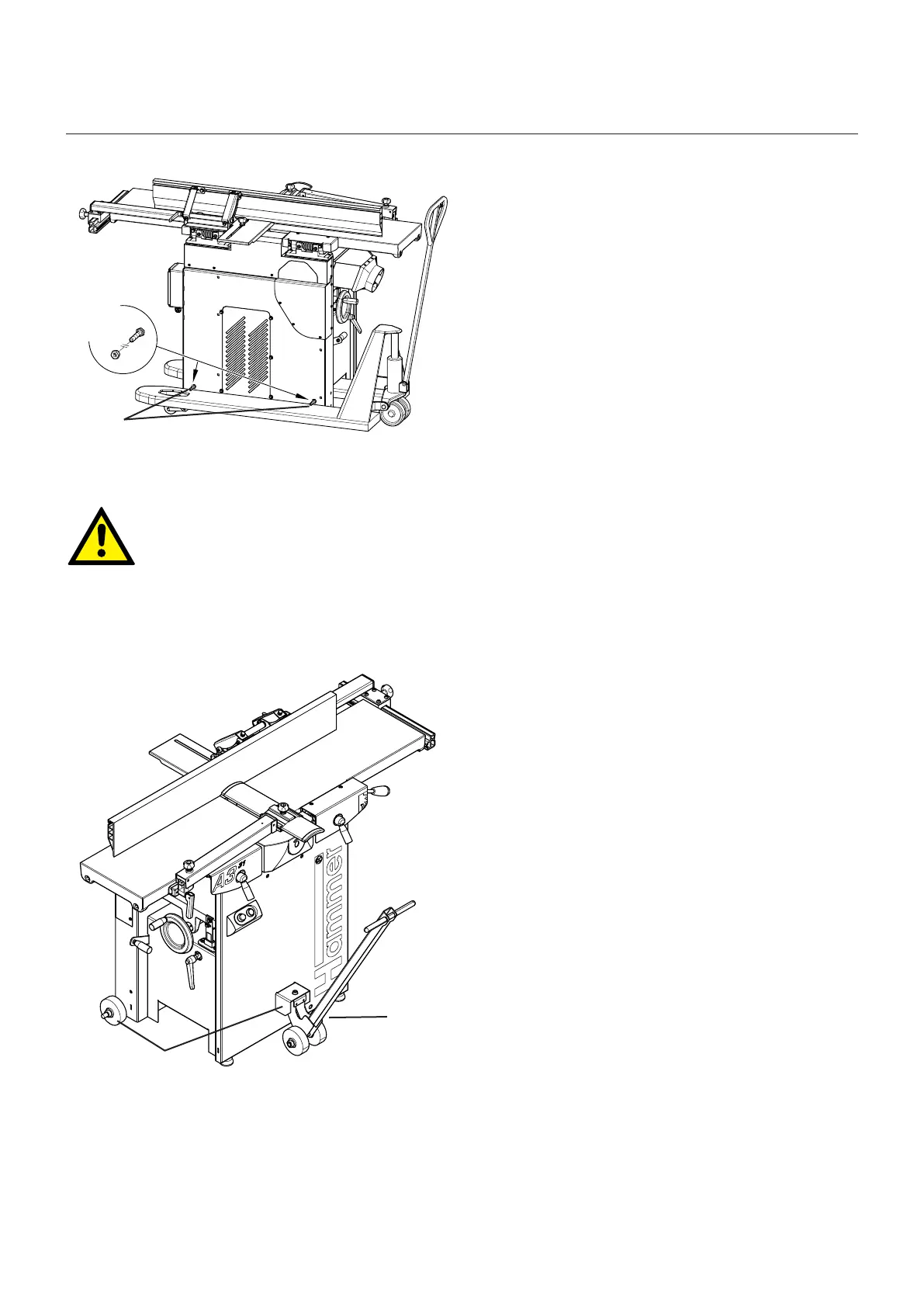 Note: The rolling carriage and the lifting bar (option) facilitate the task of transporting the machine.