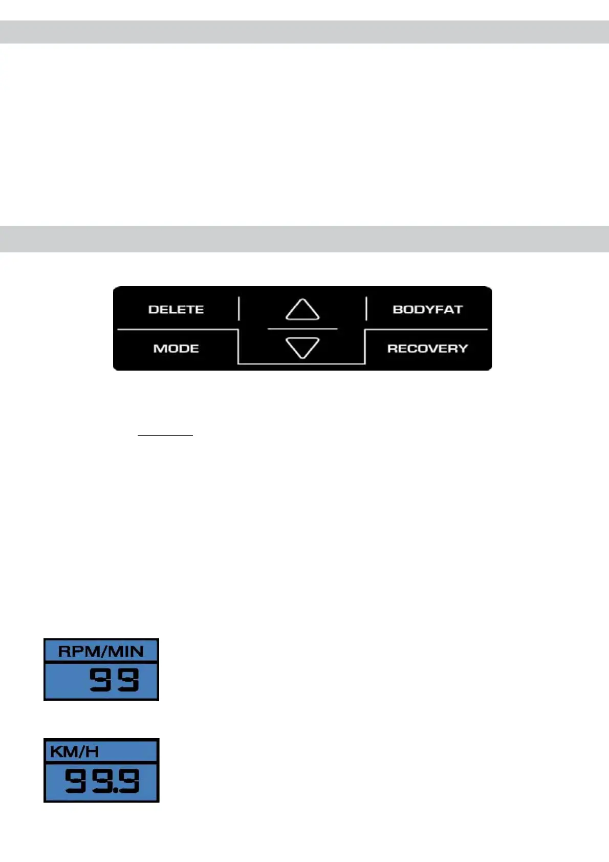 Durch Drücken der Bodyfat-Taste, können Sie jederzeit während des Trainings den Körperfettwert und BMI ermitteln lassen. Bitte achten