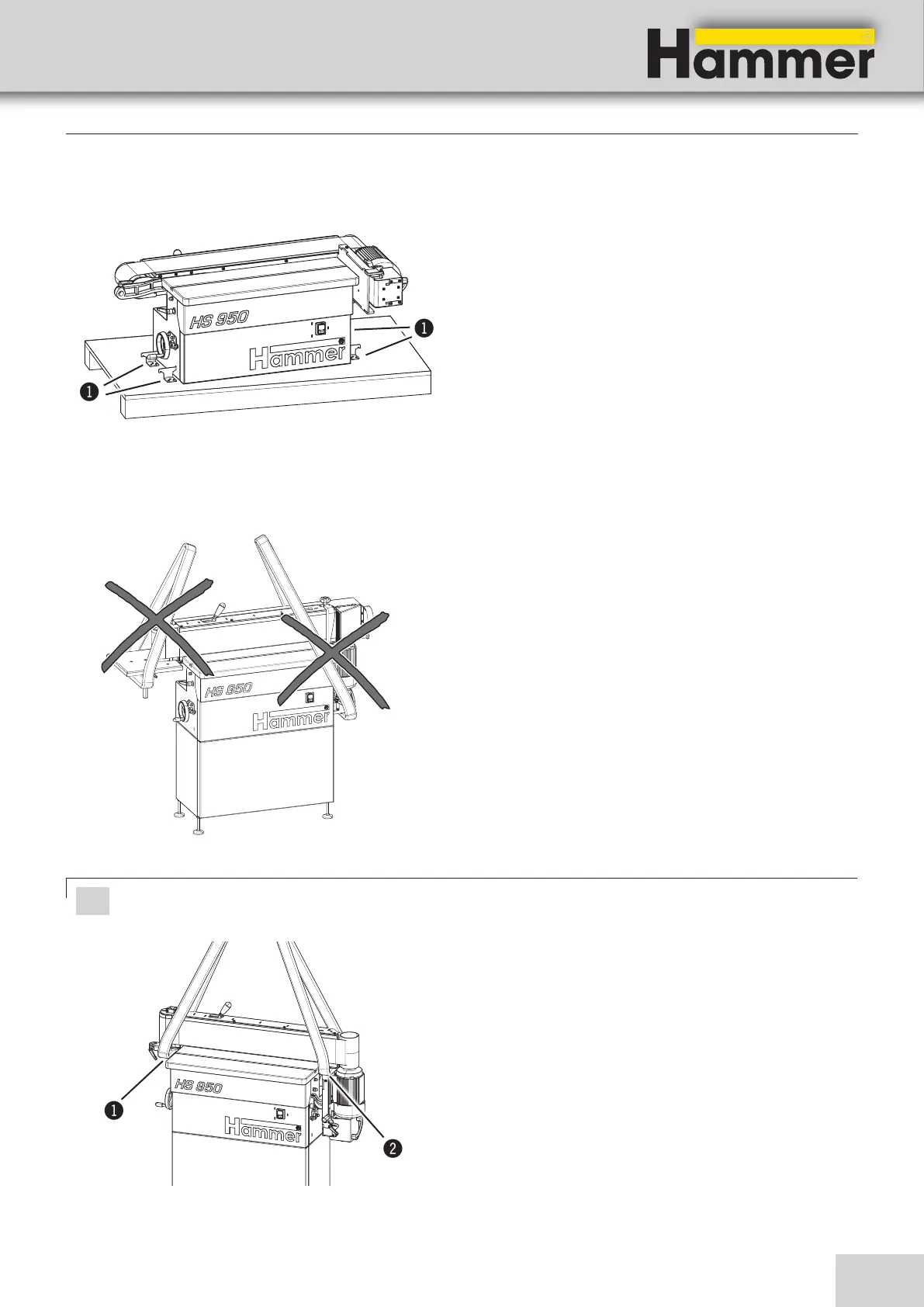 Do not lift the machine by its work table, extension frames or handwheels