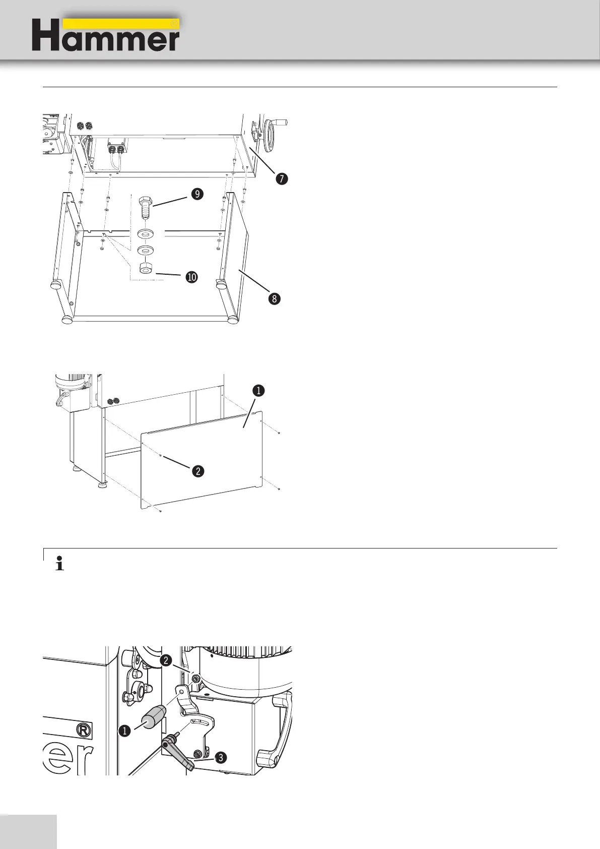 If the machine stand is not mounted on the machine frame, the machine must be placed on a stable and level