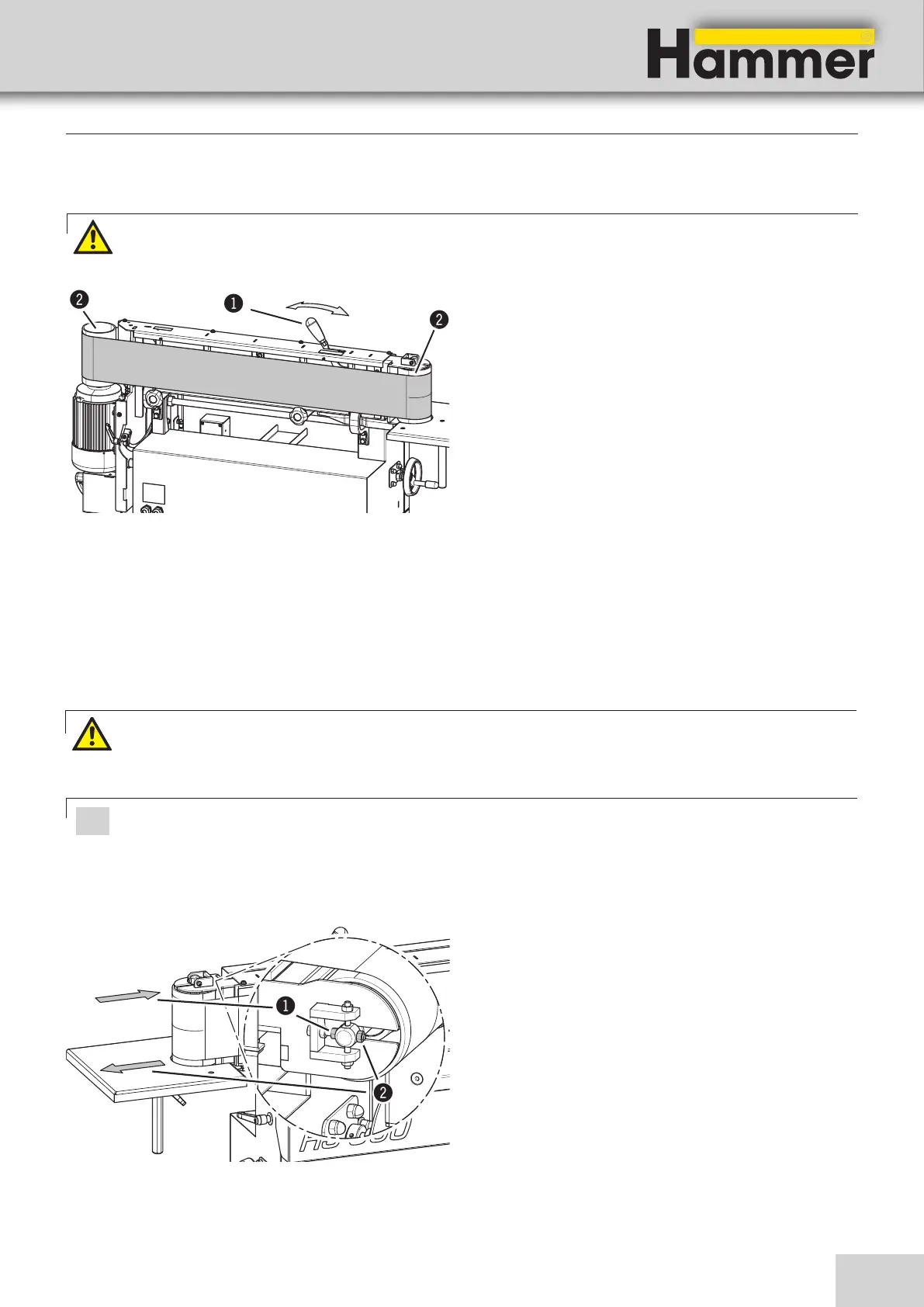 The sanding belt is centered during the machine test in the factory. Proceed very cautiously with the settings