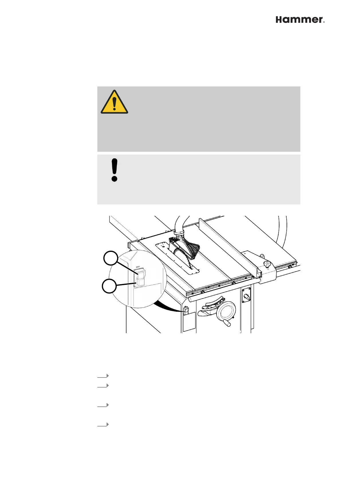 2 Red stop button - Saw blade OFF