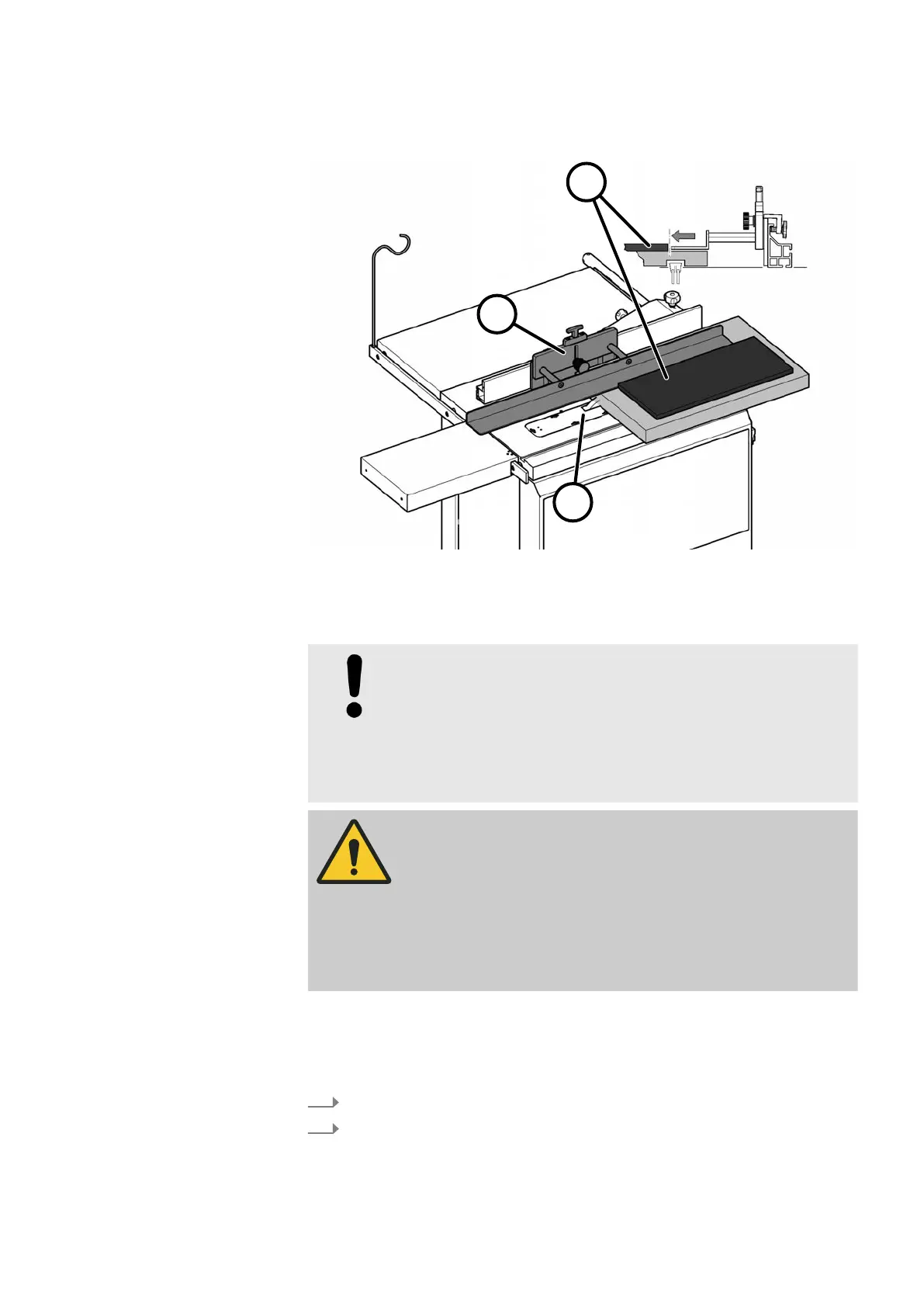 − Use overhead saw guard or "Sägeboy" auxiliary fence (acces-