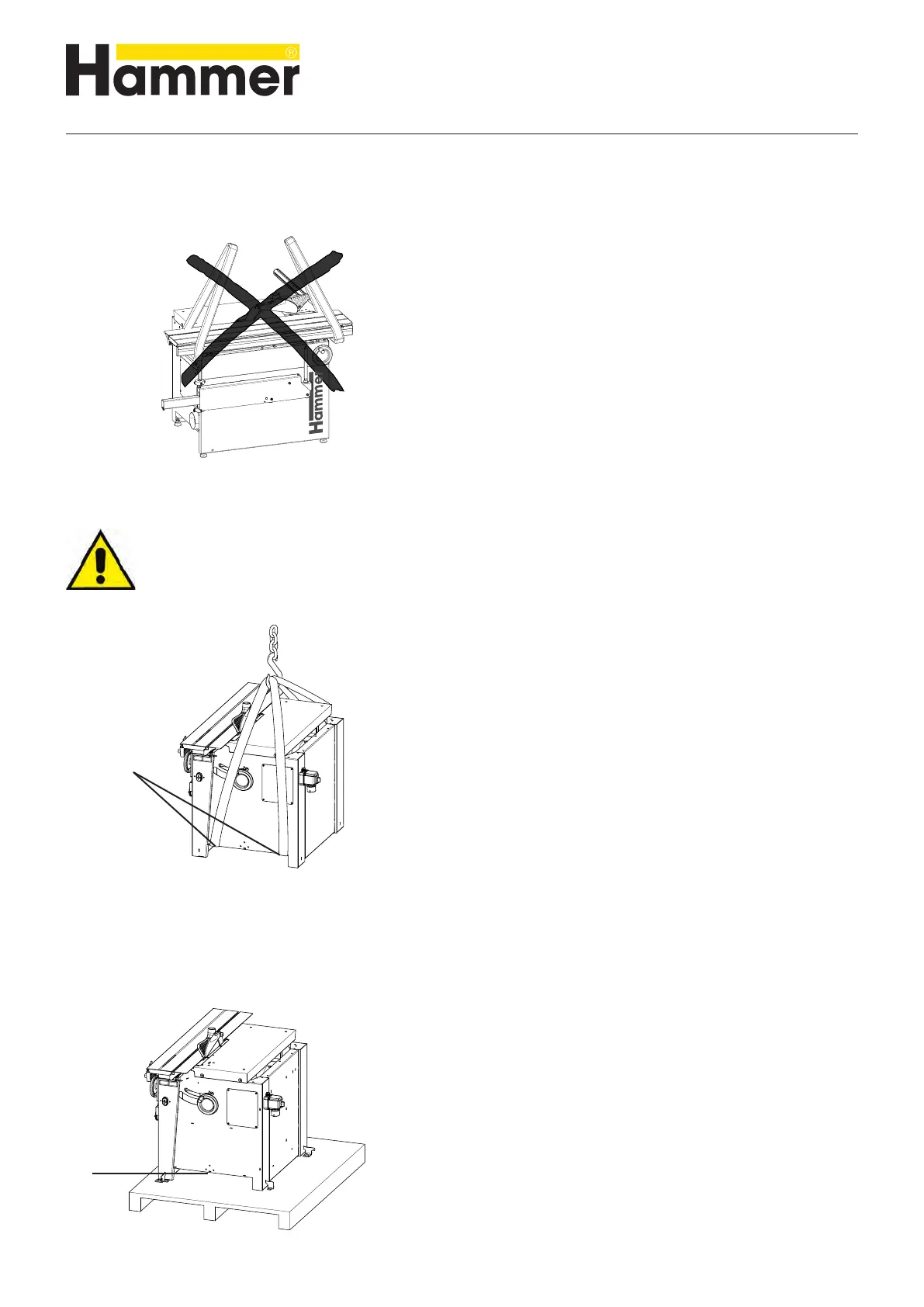 Attention! Risk of material damage! The machine must not be lifted by the work table, sliding table or