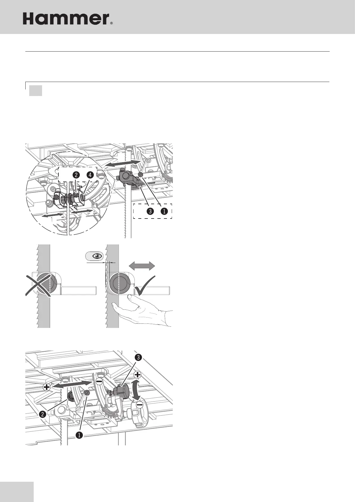 The saw band guides can only be adjusted after the band tension and band run have been set correctly. The