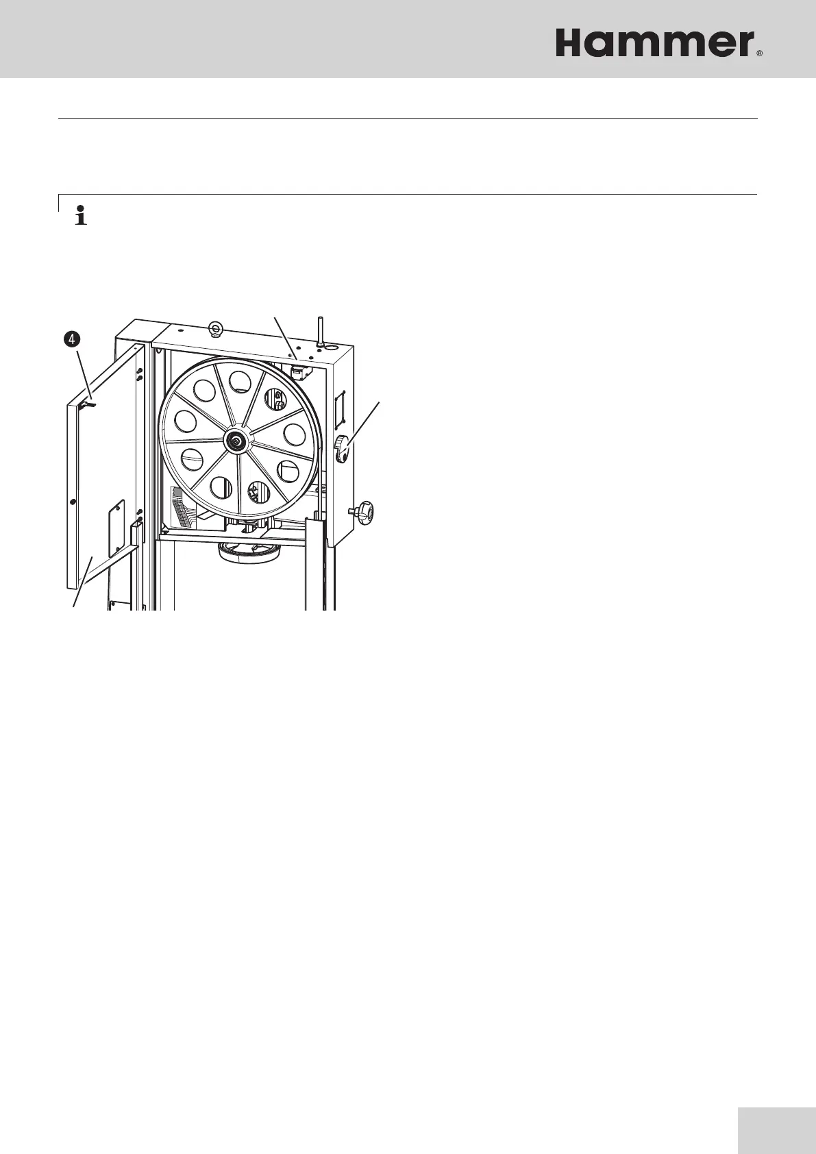 Note: The machine only runs when the end switch in the inside of the machine frame is engaged by the
