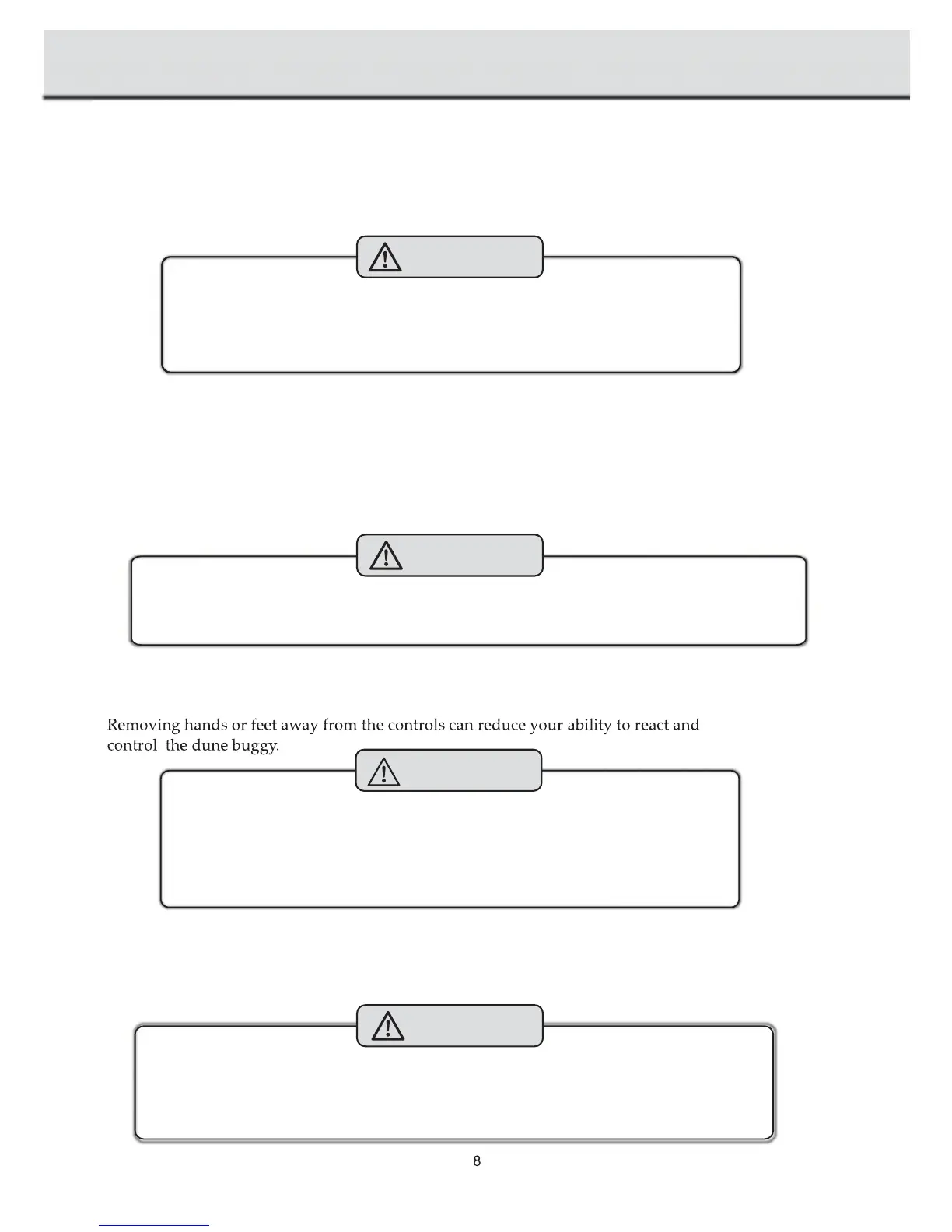 on the foot controls. It is important to maintain your balance and to control the Dune Buggy.