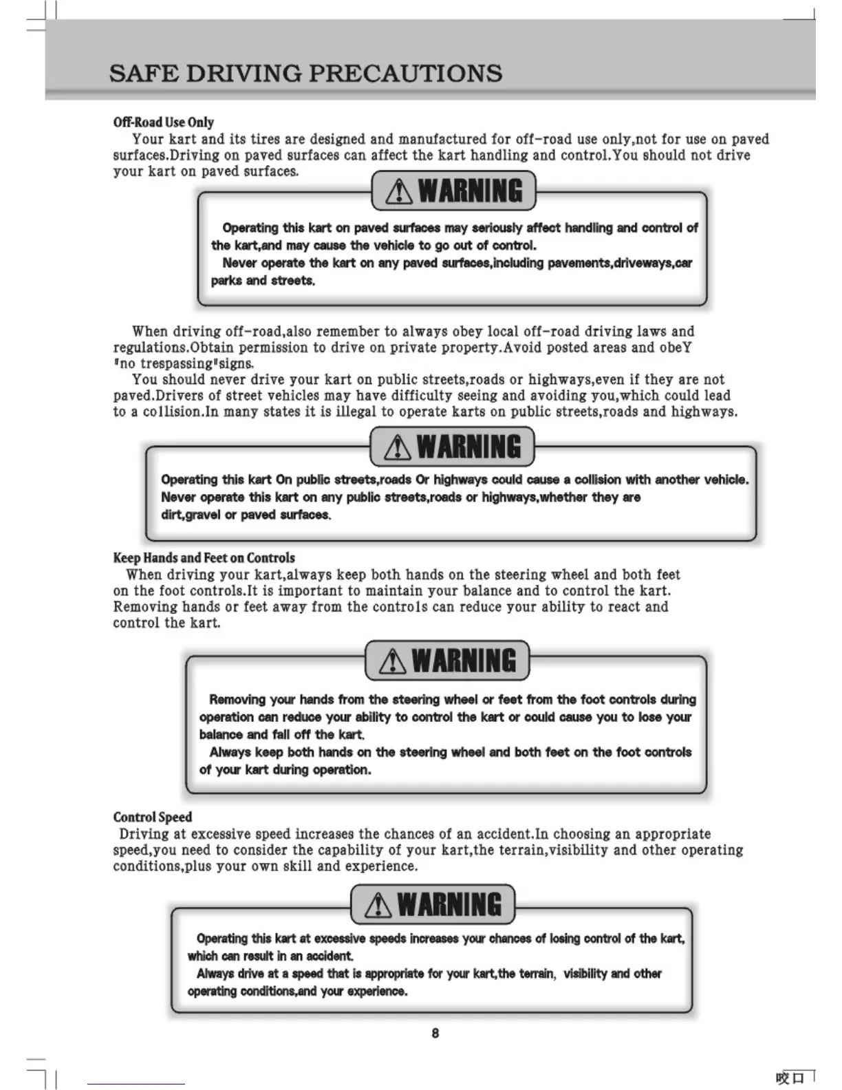 Hammerhead SS250 - Safe Driving Precautions