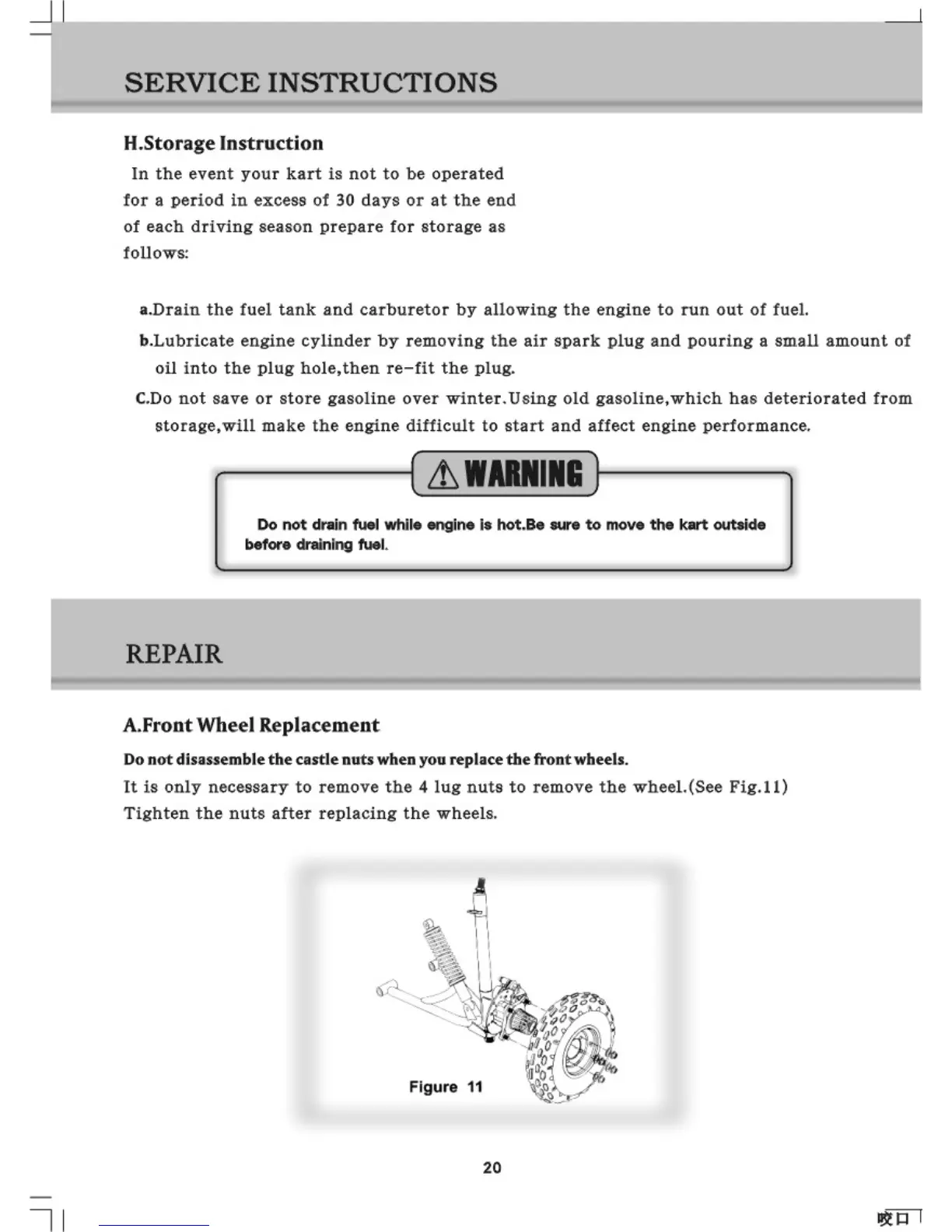 Hammerhead SS250 - Storage and General Service Tasks; Wheel Replacement and Alignment