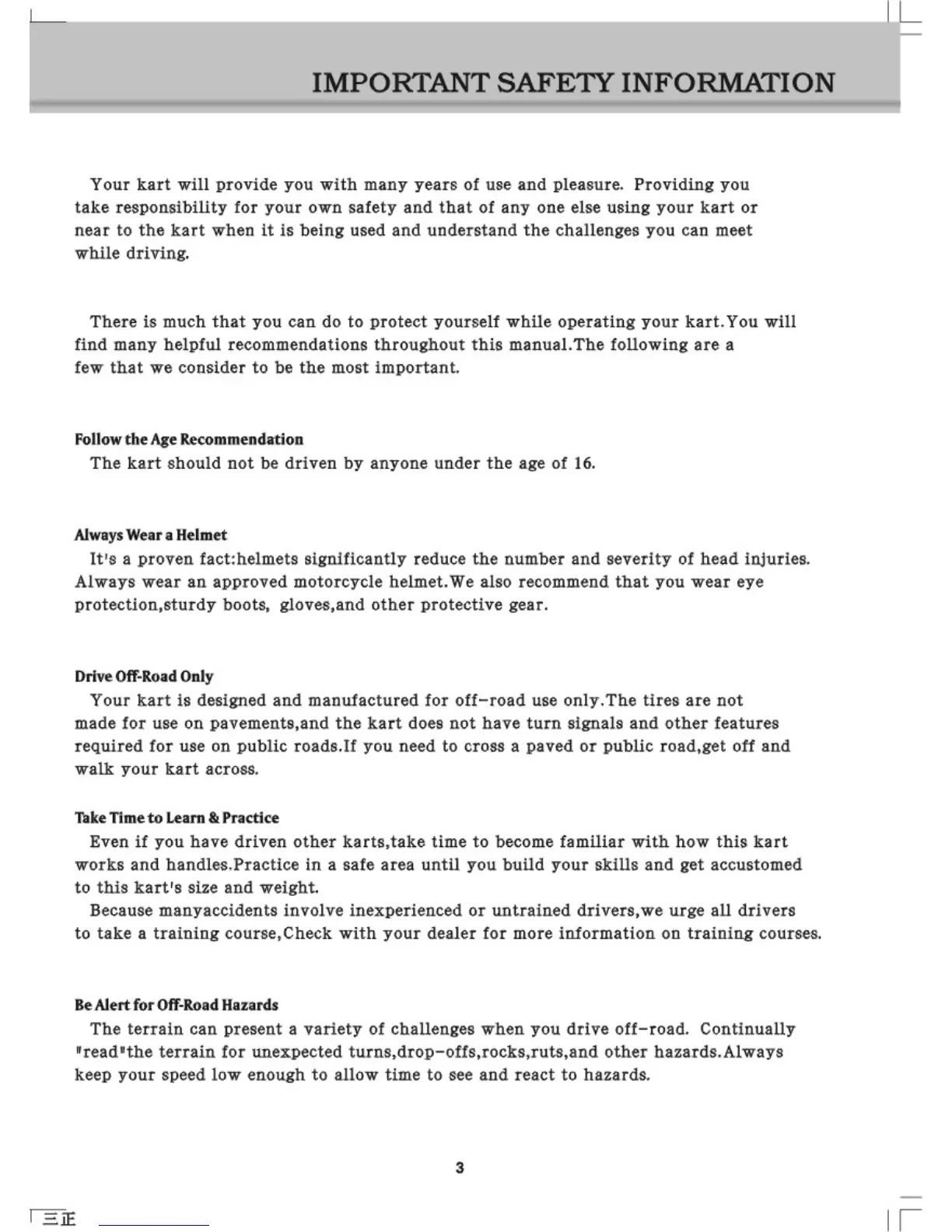 Hammerhead SS250 - Key Safety Precautions