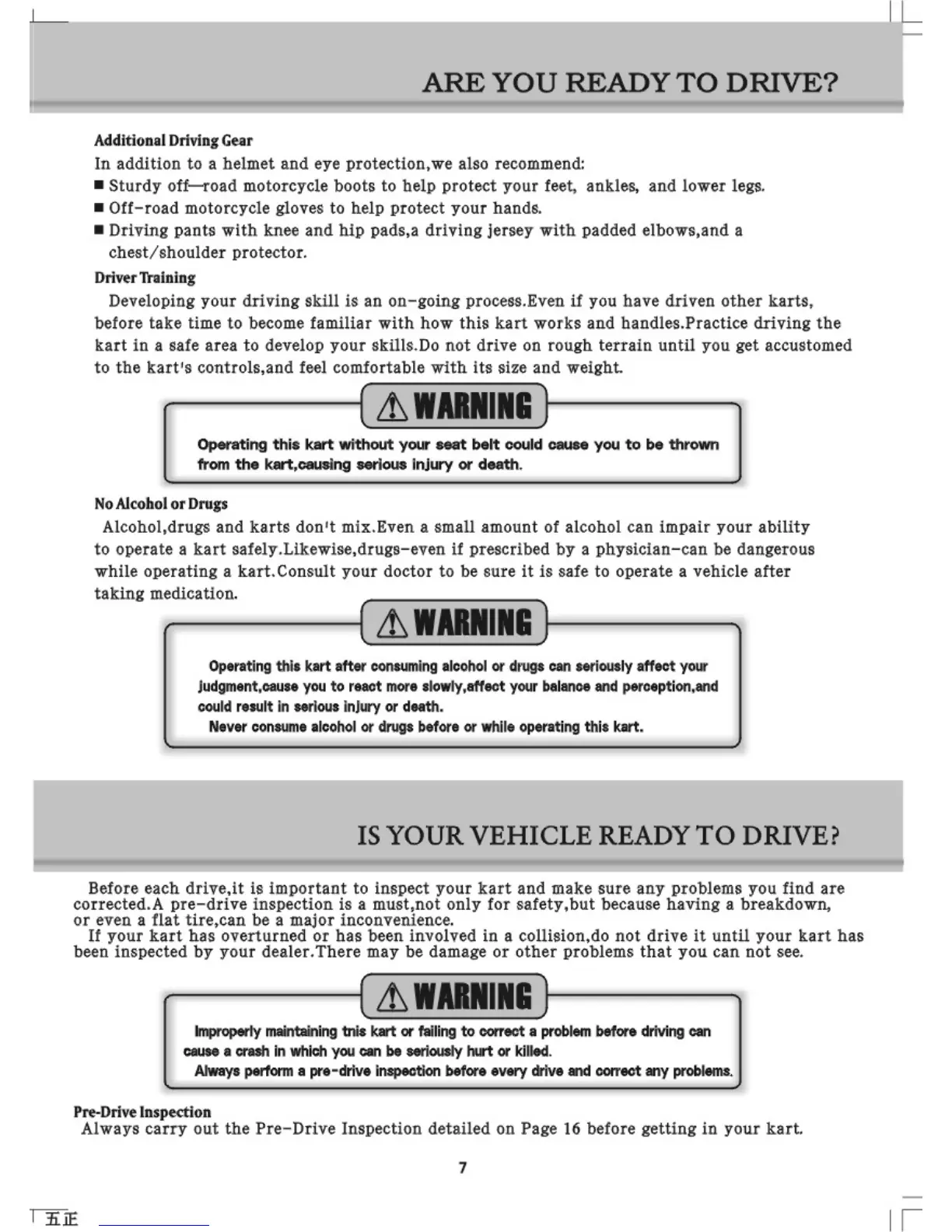 Hammerhead SS250 - Additional Driving Gear; Driver Training; No Alcohol or Drugs