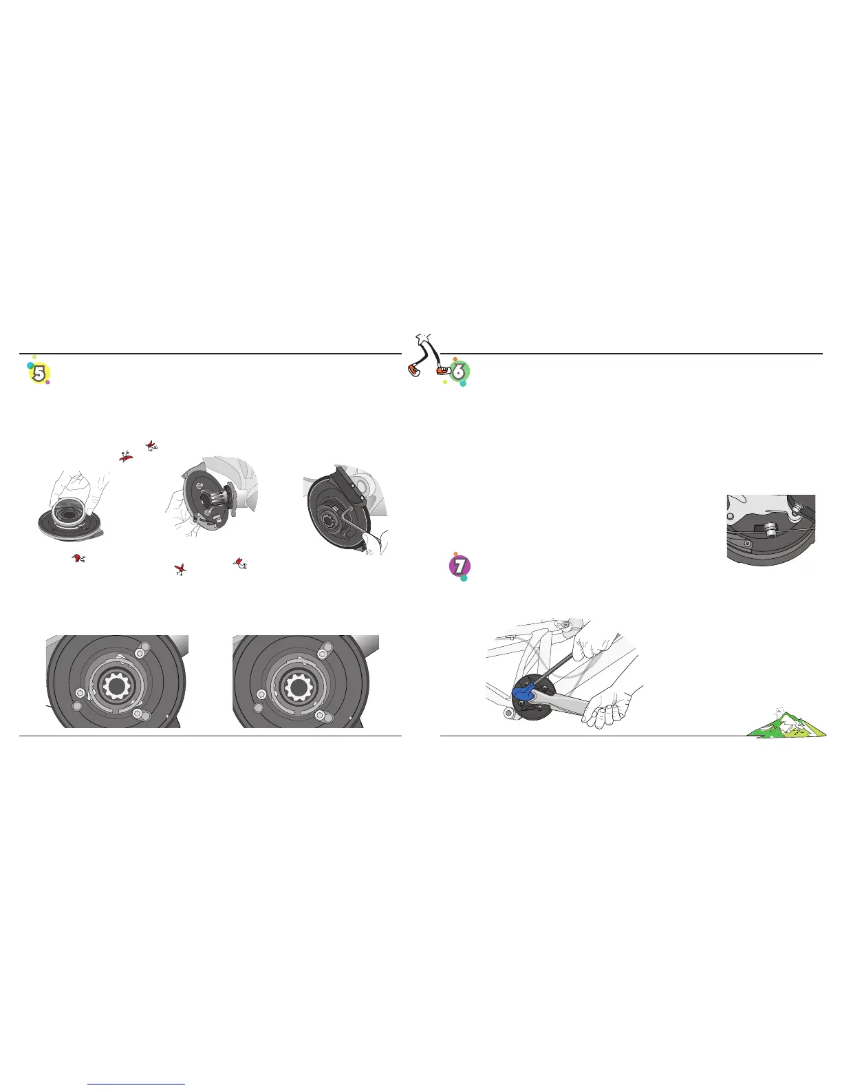 the drive side spindle. Align the mounting bolts to the mating ISCG tabs and hand start each bolt. Gently push the as-