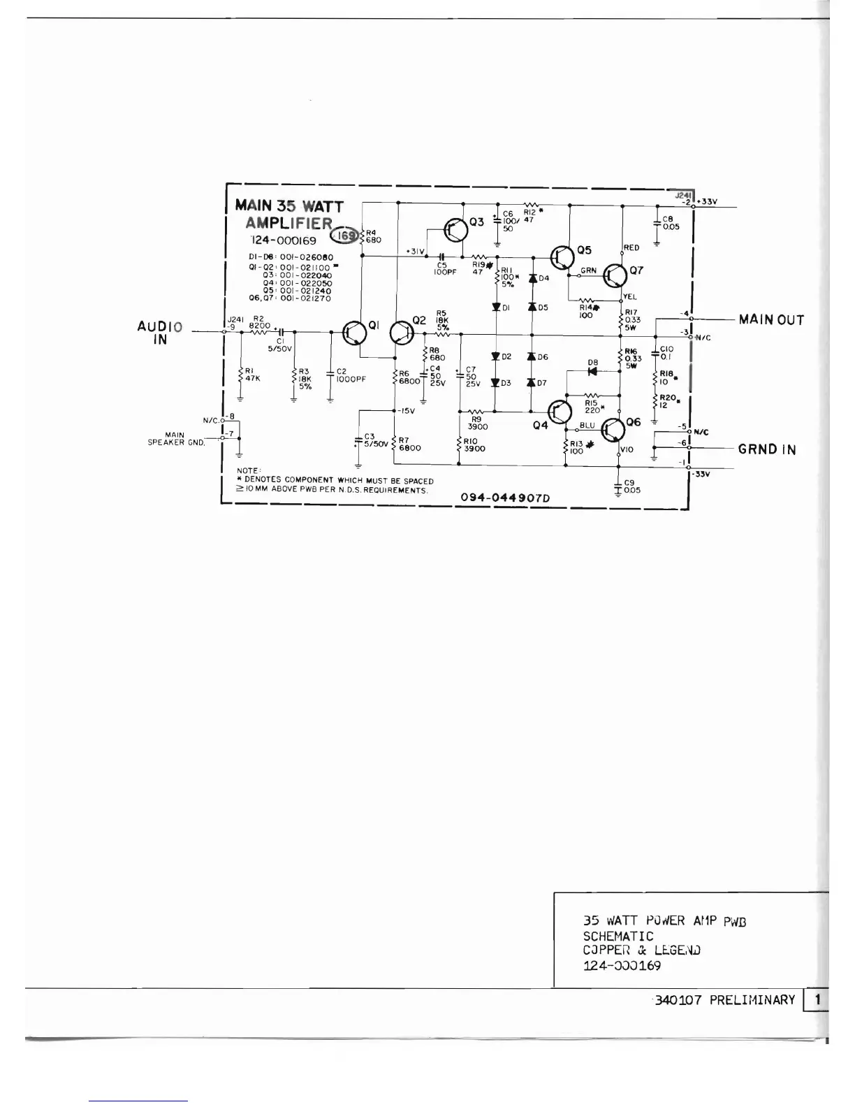 Hammond 340107 - 35 Watt Power Amp PWB Schematic & Layout
