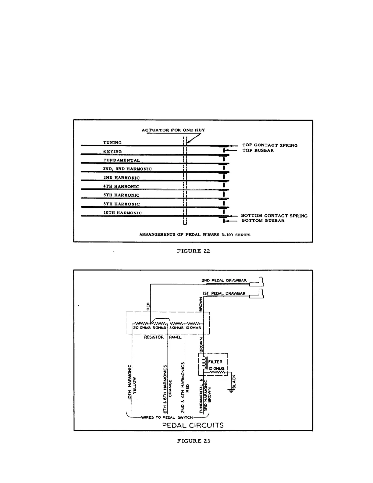Connections from the pedals to the manual are indicated in Figure 12. A low voltage