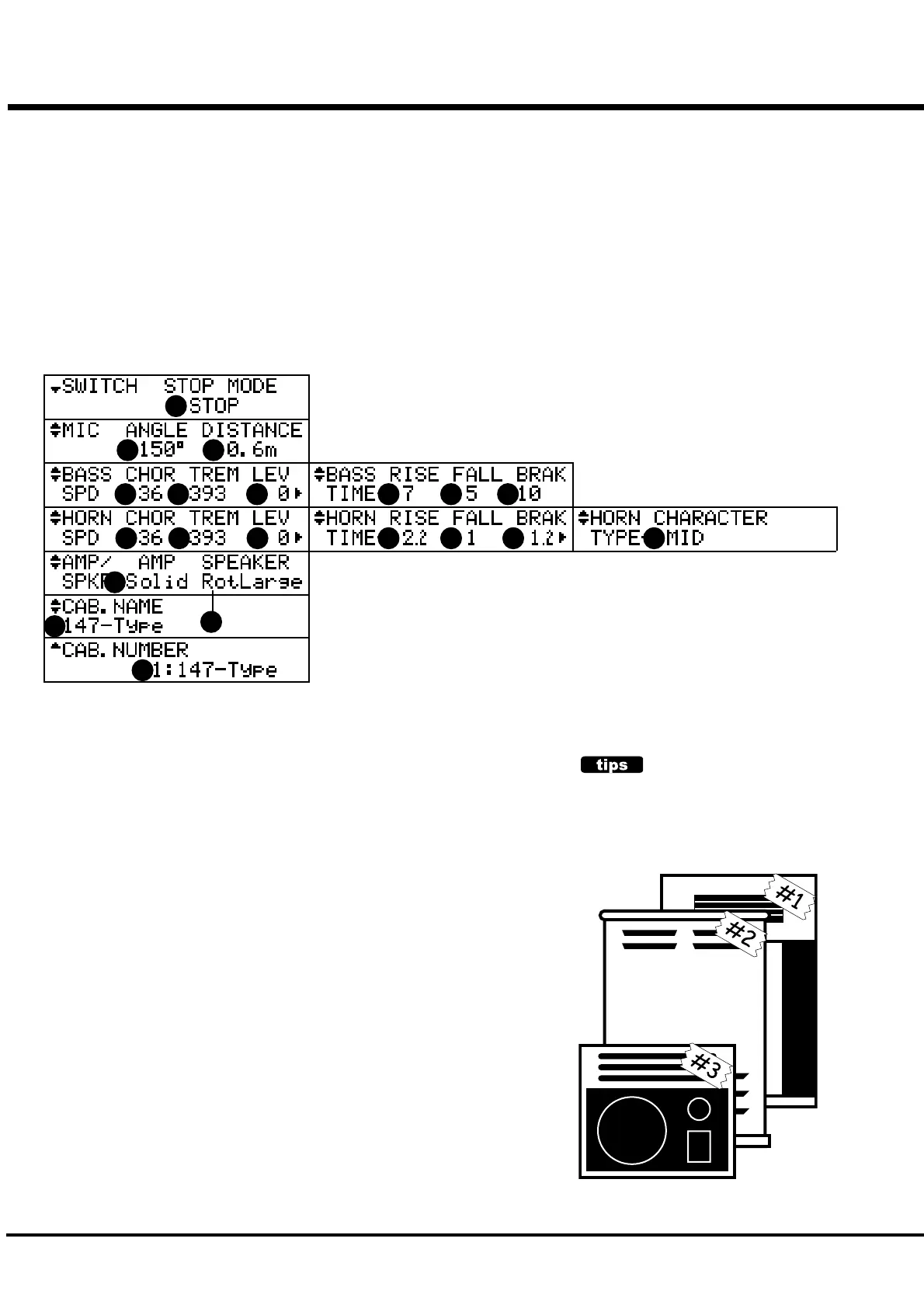Here you select the CABINET NUMBER to use in the Combination Presets.