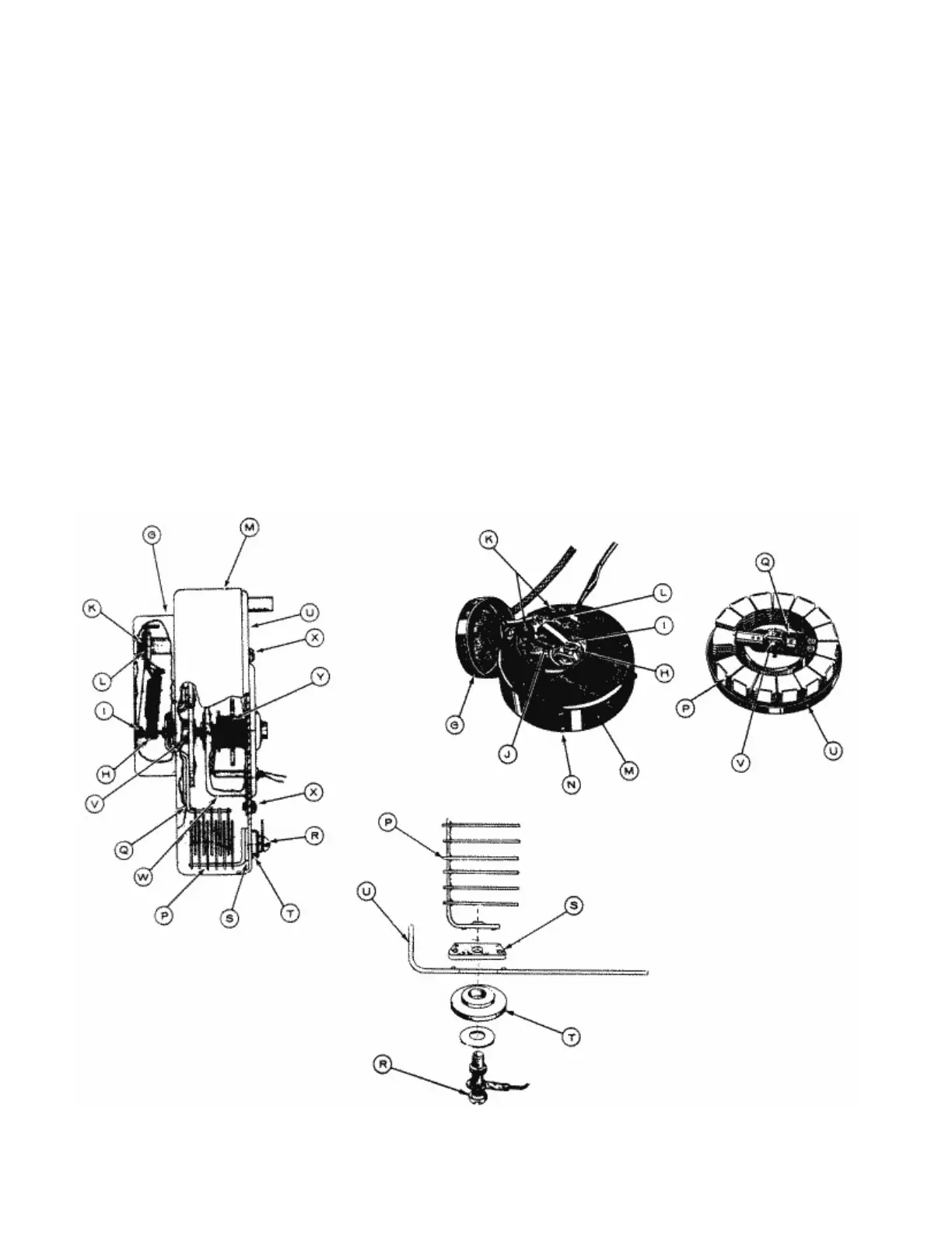 13. In removing the gear housing assembly (W) there are four (4) screws (X) holding