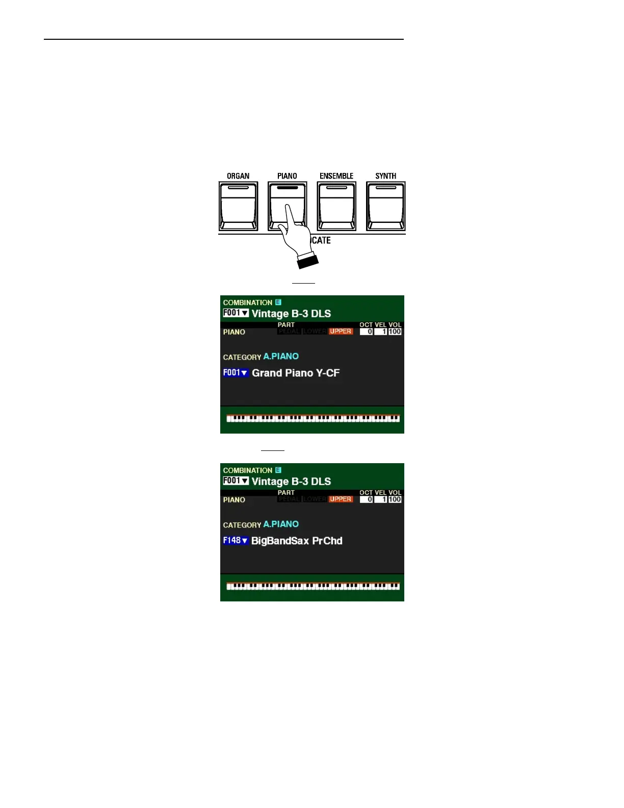 7. While holding the keys down, play a single-note melody on the UPPER Part. You will hear the