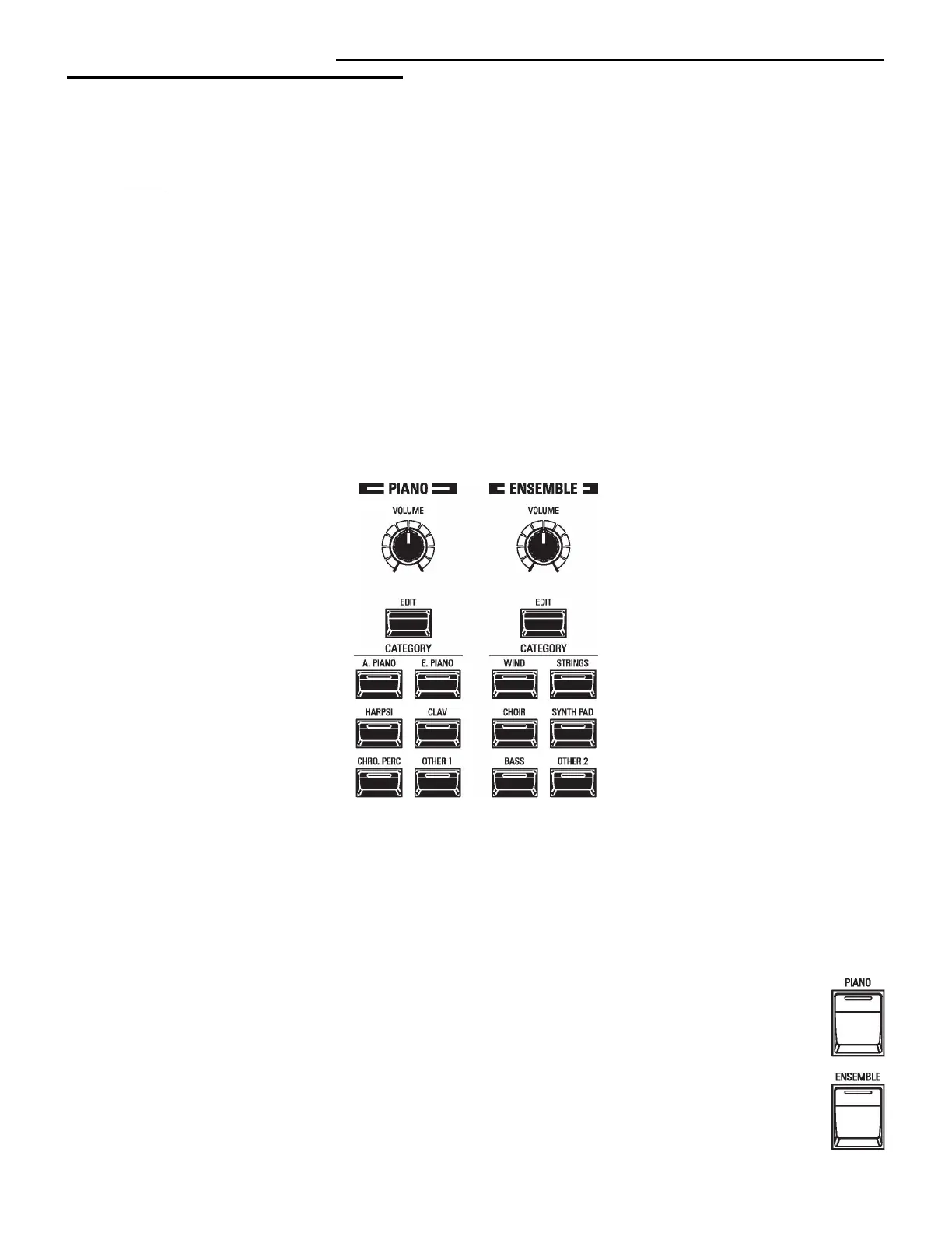 Both the Factory and User Patches can be played from either the PIANO or ENSEMBLE Section.