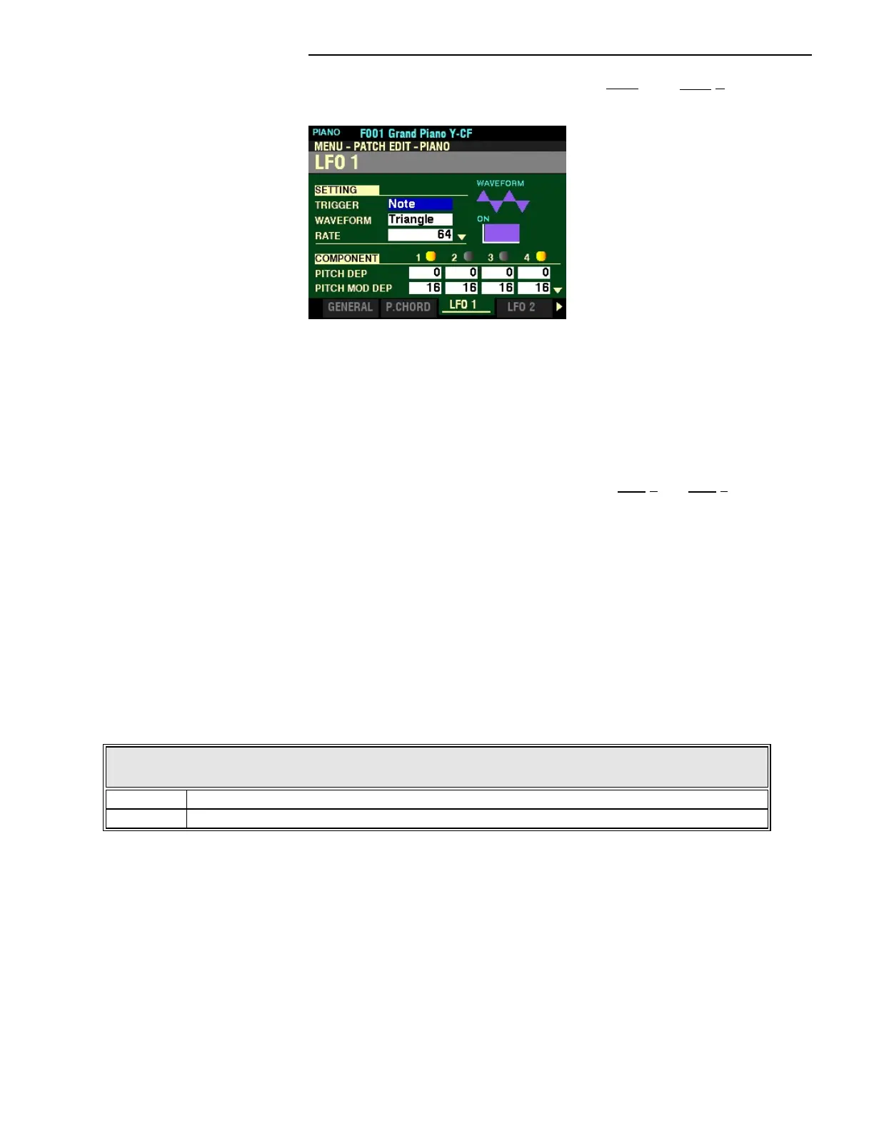 Note The LFO of each note oscillates individually. Each LFO will start its cycle when a key is depressed.