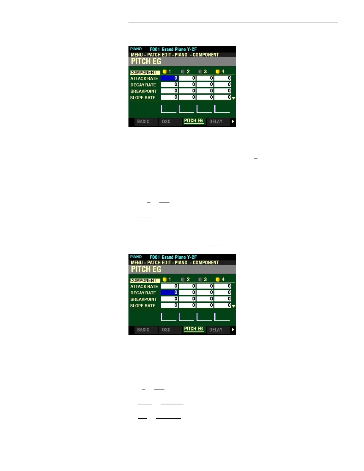 NOTE: The PITCH EG DEPTH Parameter must be set to some value other than 0 to hear the effect produced