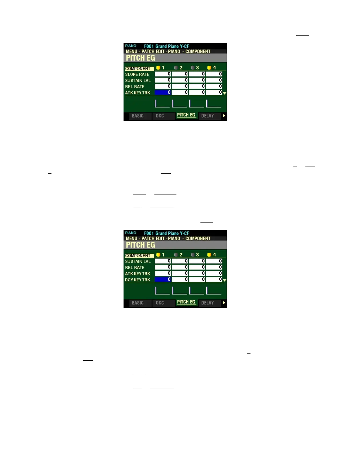 This Parameter allows you to adjust the Decay Rate of the Pitch EG by note. At 0 each note will sound the