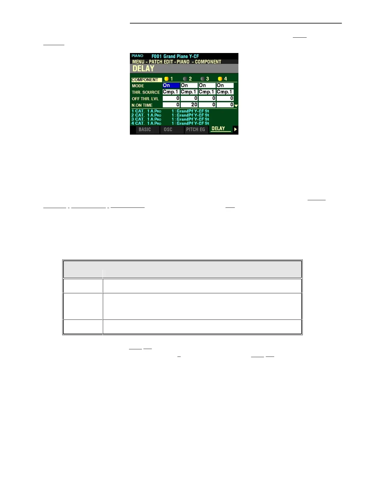 This FUNCTION Mode Page allows you to adjust the note delay characteristics of the selected Component.